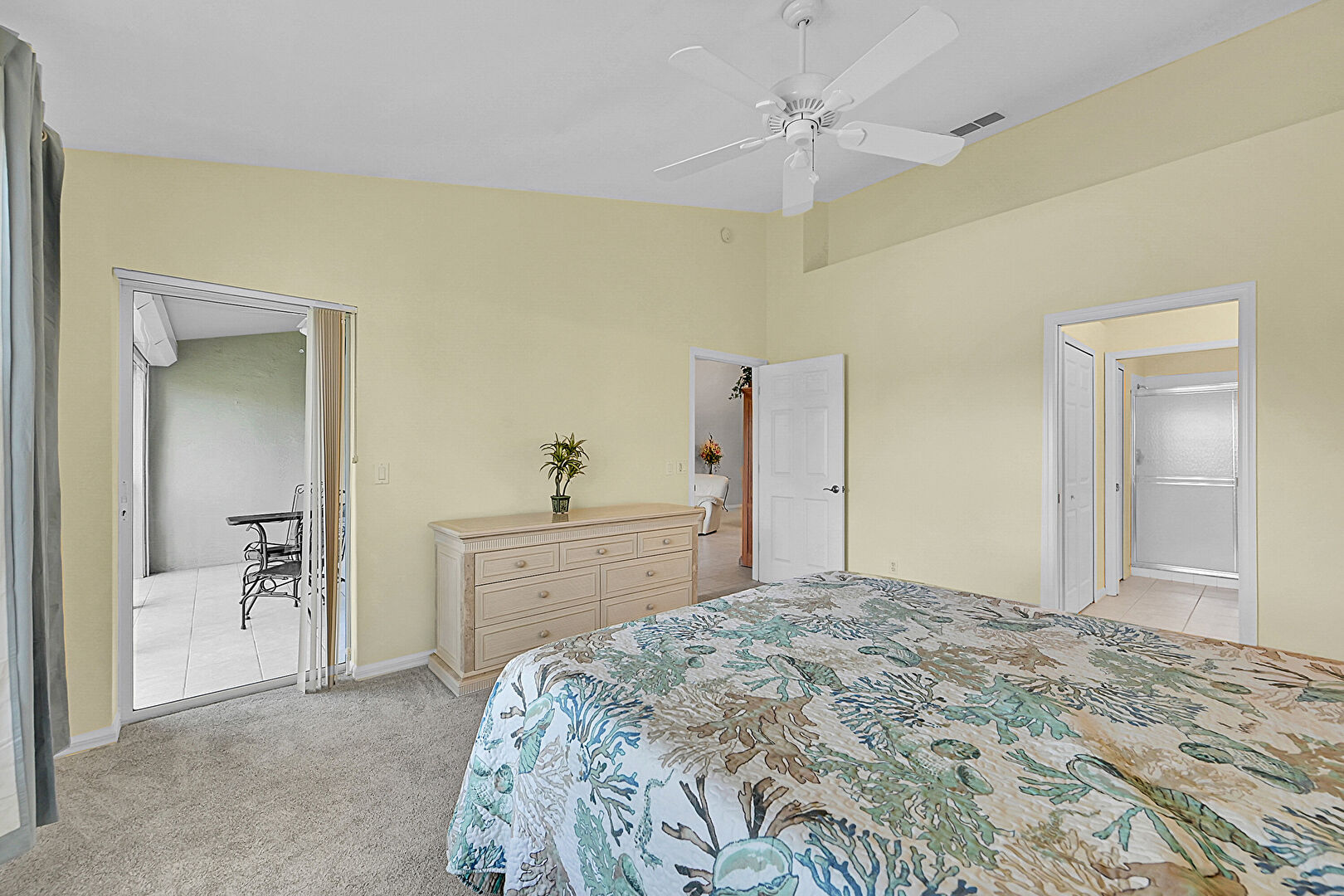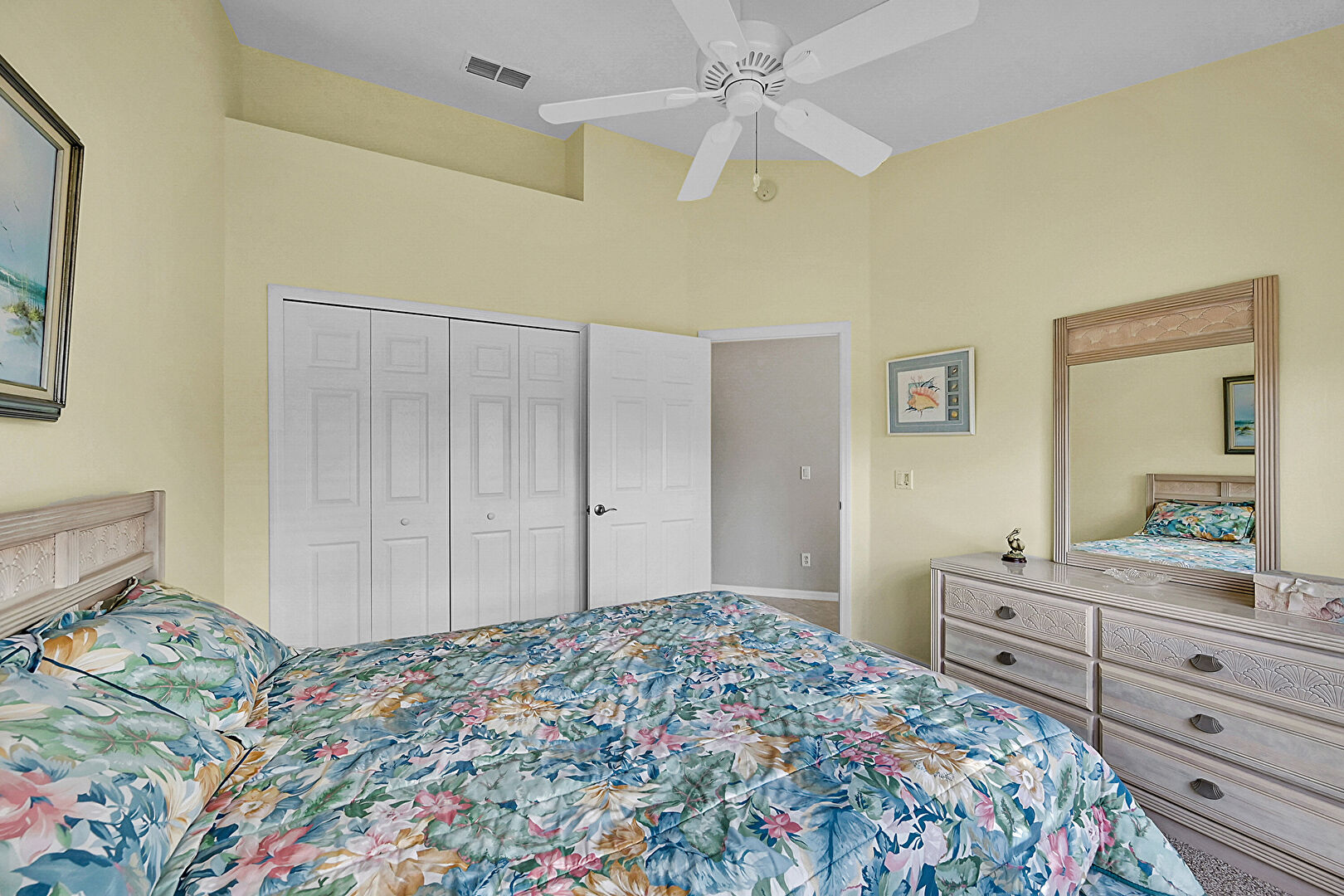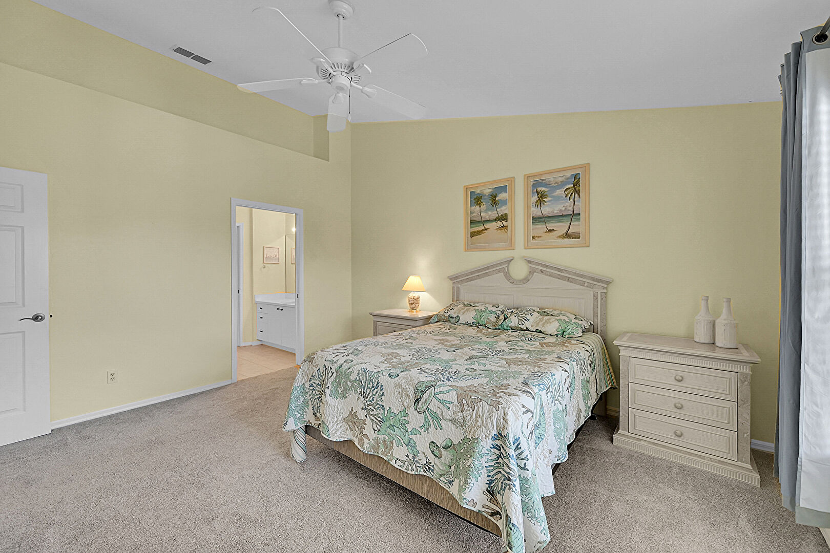 Baseboards Wall, Carpet, Ceiling Fan, Closet, Drywall, Ensuite Bathroom, High Ceiling, Natural Light, Vaulted Ceiling, Vent, Carpet, Ceiling Fan, Drywall, Vaulted Ceiling