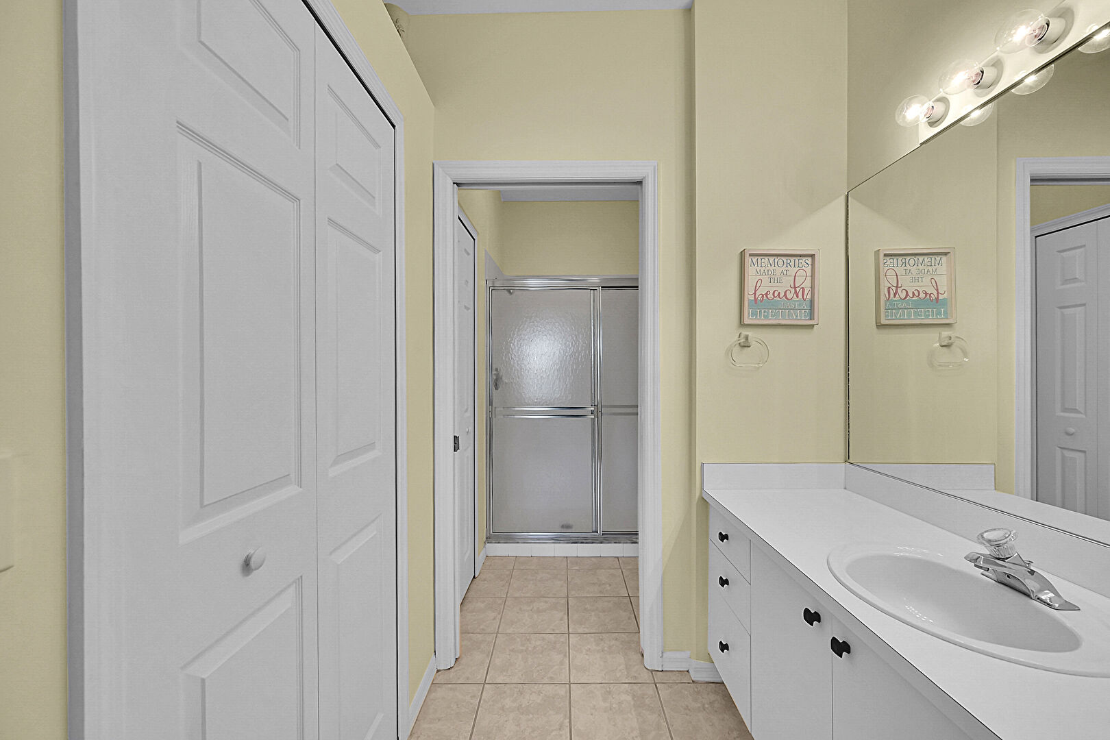 Baseboards Wall, Closet, Combined Bath Shower, Drywall, Full Bathroom, Tile Floor, Vanity, Baseboards Wall, Closet, Drywall, Full Bathroom, Tile Floor