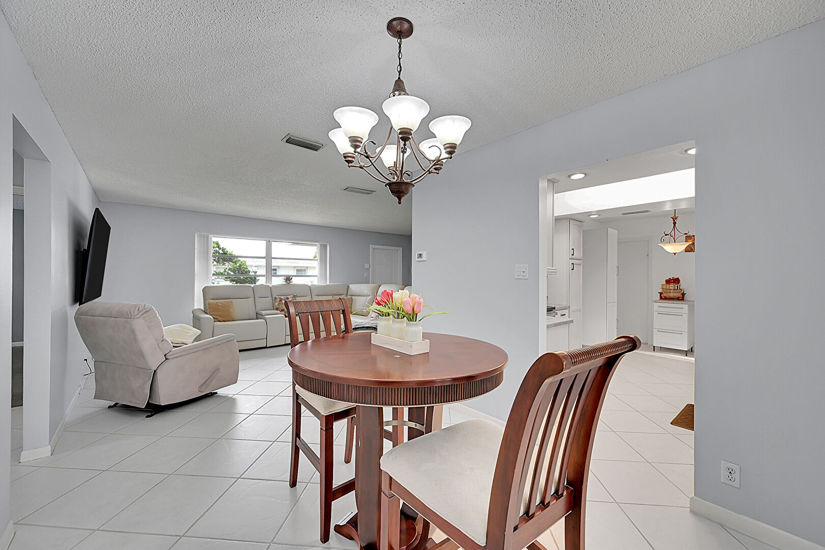 Baseboards Wall, Drywall, Natural Light, Notable Chandelier, Textured Ceiling, Tile Floor, Vent