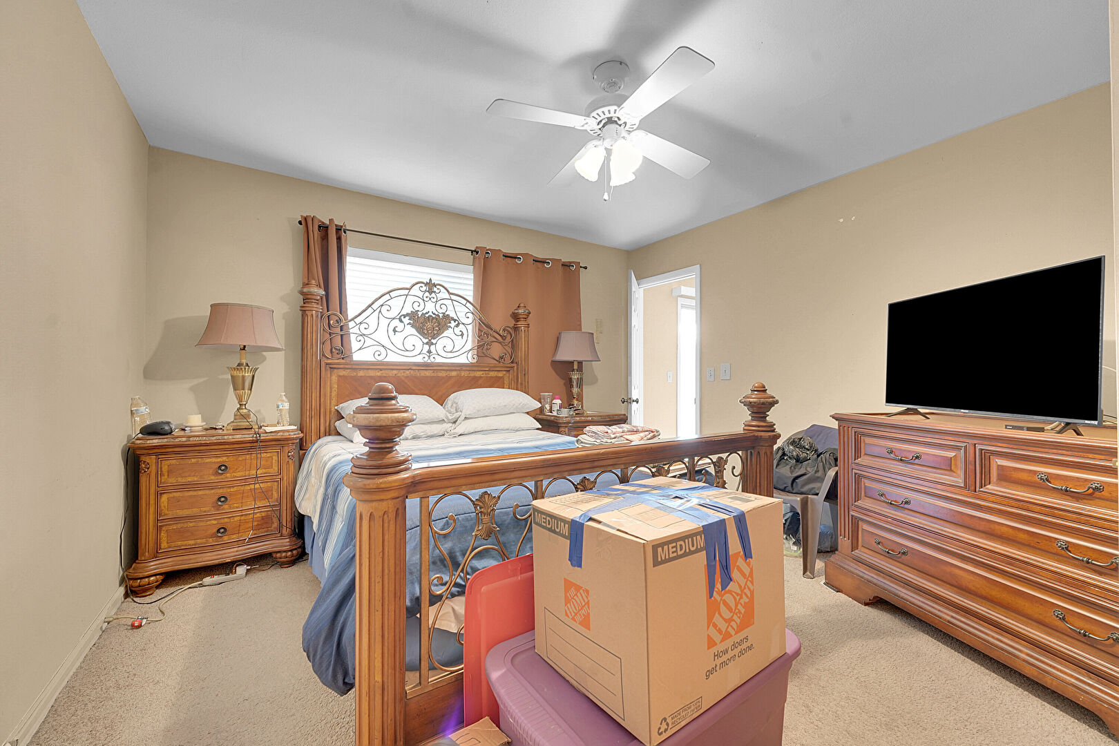 Baseboards Wall, Carpet, Ceiling Fan, Closet, Drywall, Ensuite Bathroom, Natural Light, Vent, Ceiling Fan, Natural Light, Tile Floor