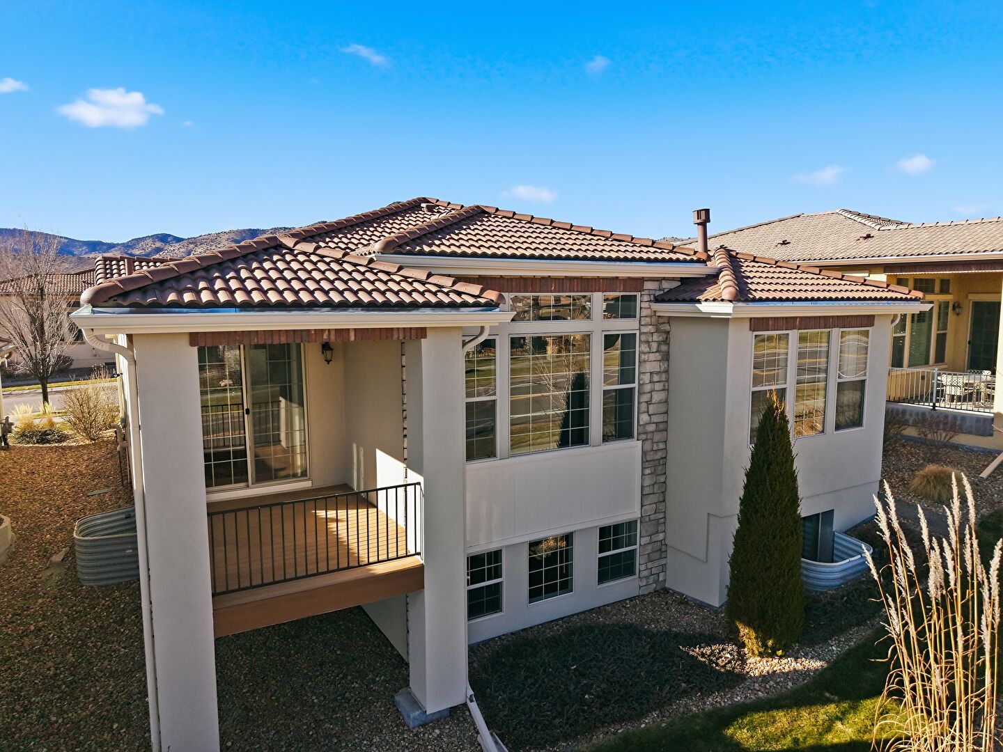 Central Ac, Downspout, Fence, Gutters, Lawn, Mountain View, Patio, Stone Siding, Stucco Siding, Tile Roof, Stucco Siding, Tile Roof