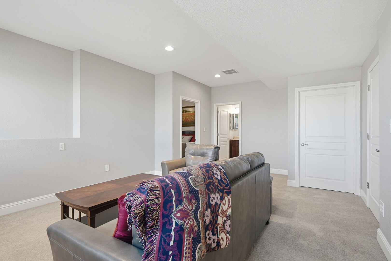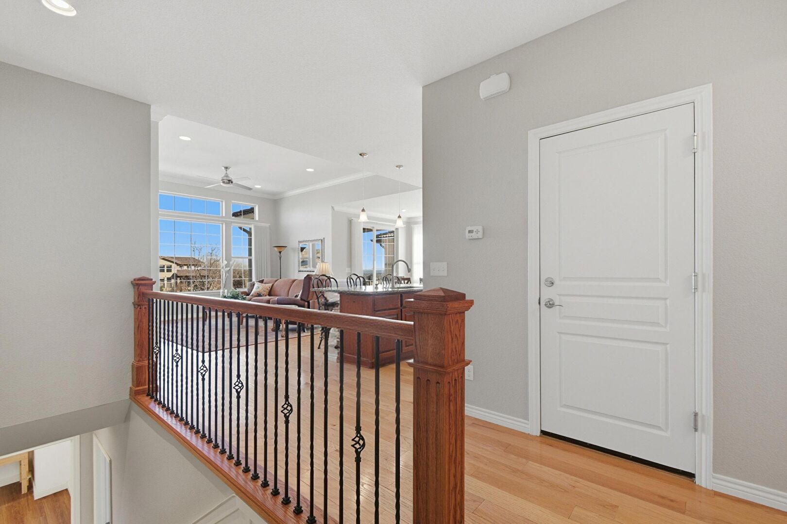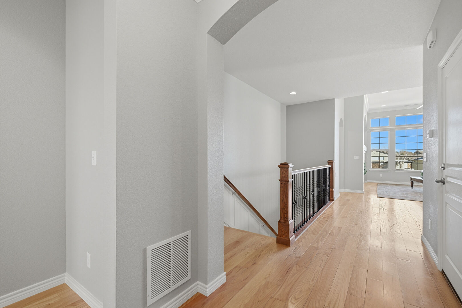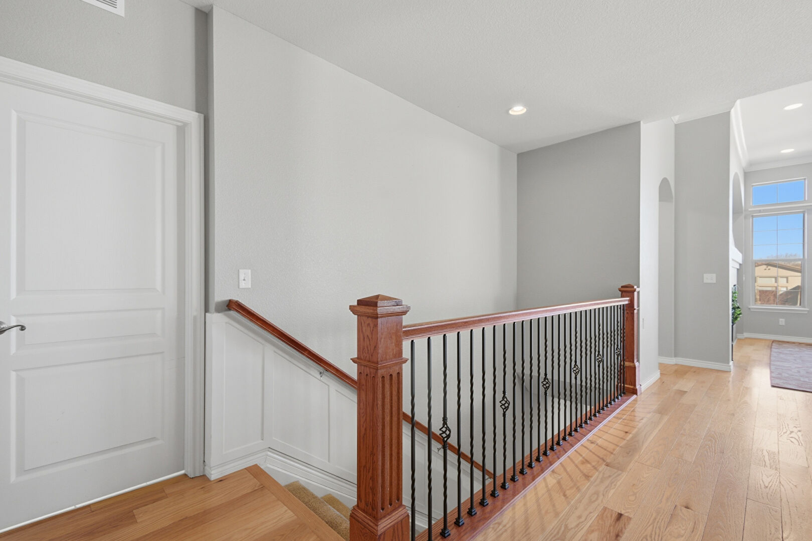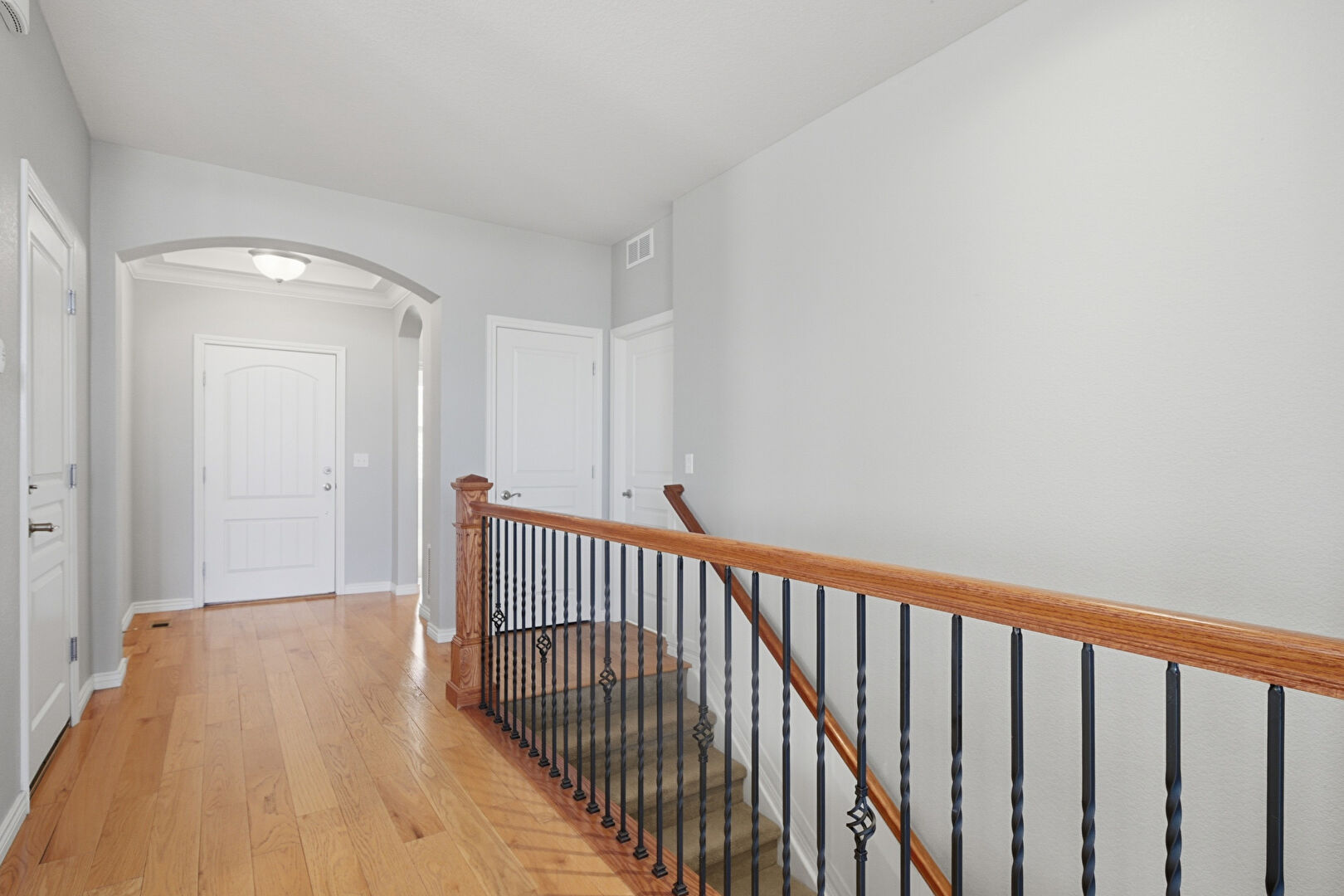 Arched Walkways, Baseboards Wall, Drywall, Loft, Natural Light, Recessed Lighting, Upstairs Landing, Vent, Wood Finish Floor, Natural Light, Upstairs Landing, Wood Finish Floor