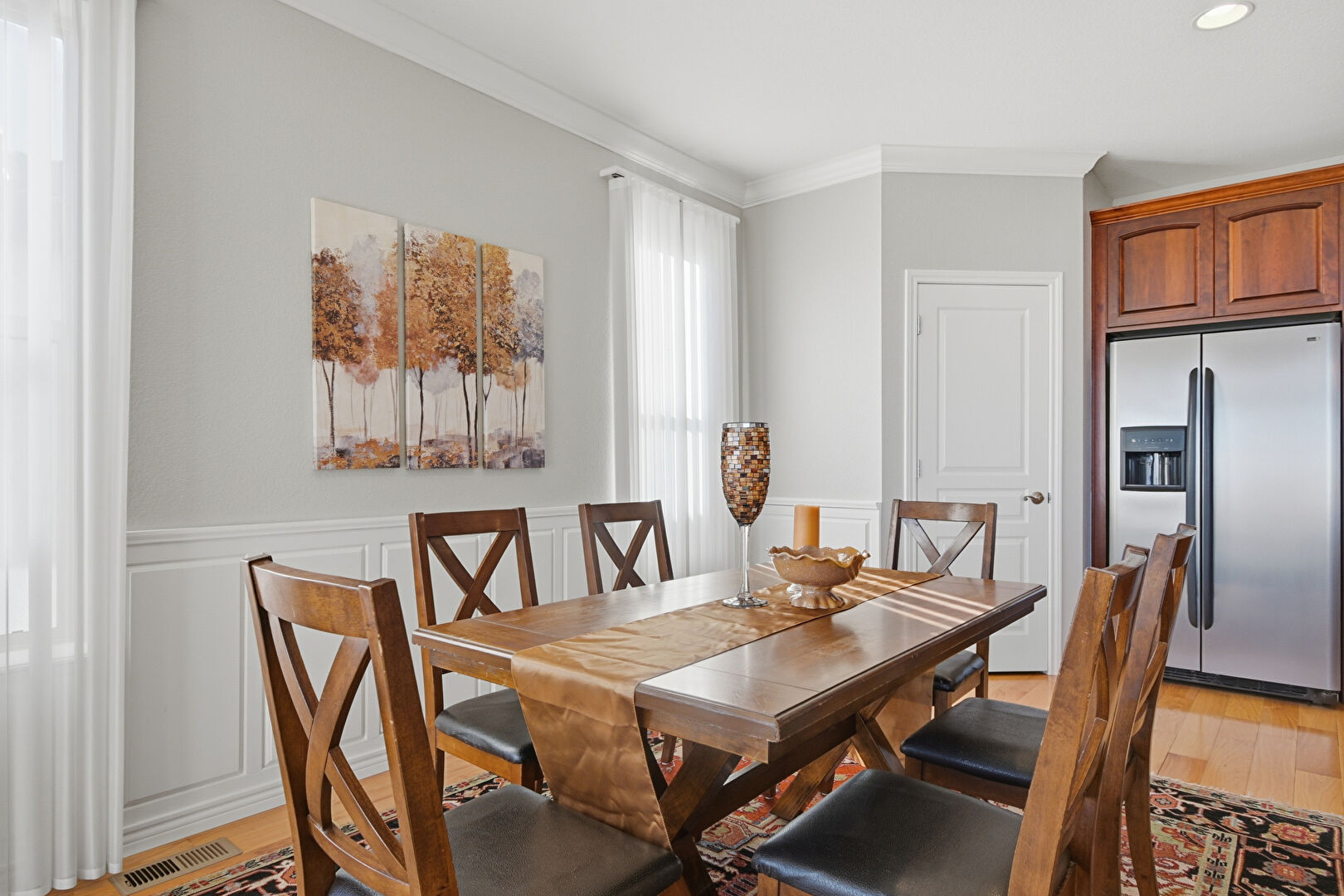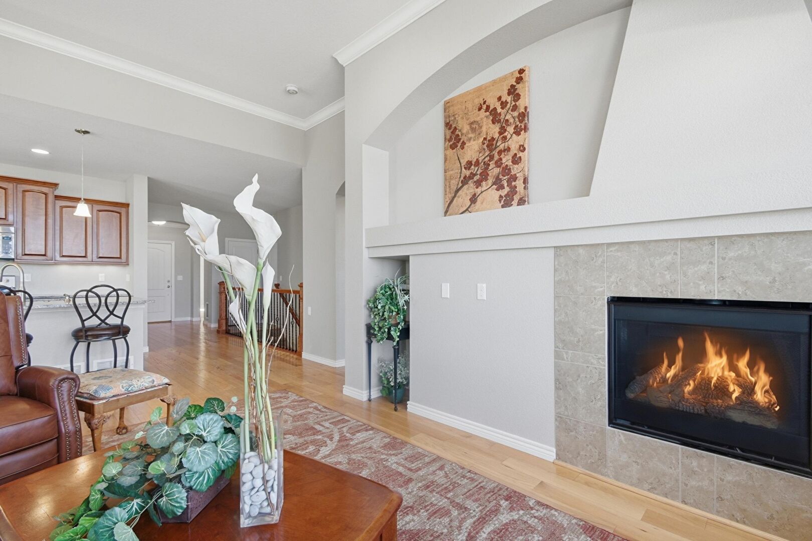Arched Walkways, Ceiling Fan, Crown Molding, Drywall, Fireplace, Natural Light, Paneling Wall, Recessed Lighting, Vent, Wainscot Wall, Wood Finish Floor, Crown Molding, Natural Light, Vent