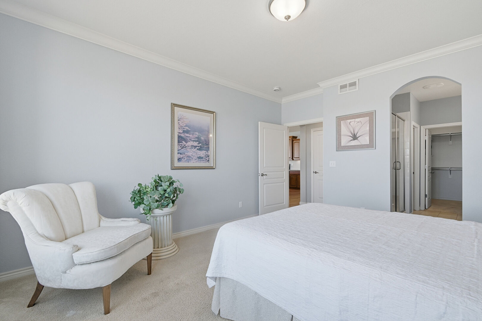 Arched Walkways, Baseboards Wall, Carpet, Crown Molding, Drywall, Natural Light, Vent, Walk In Closet, Crown Molding, Drywall, Ensuite Bathroom, Vent