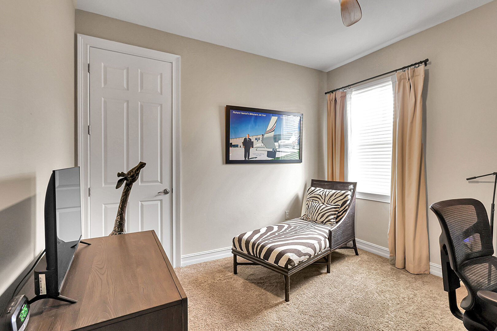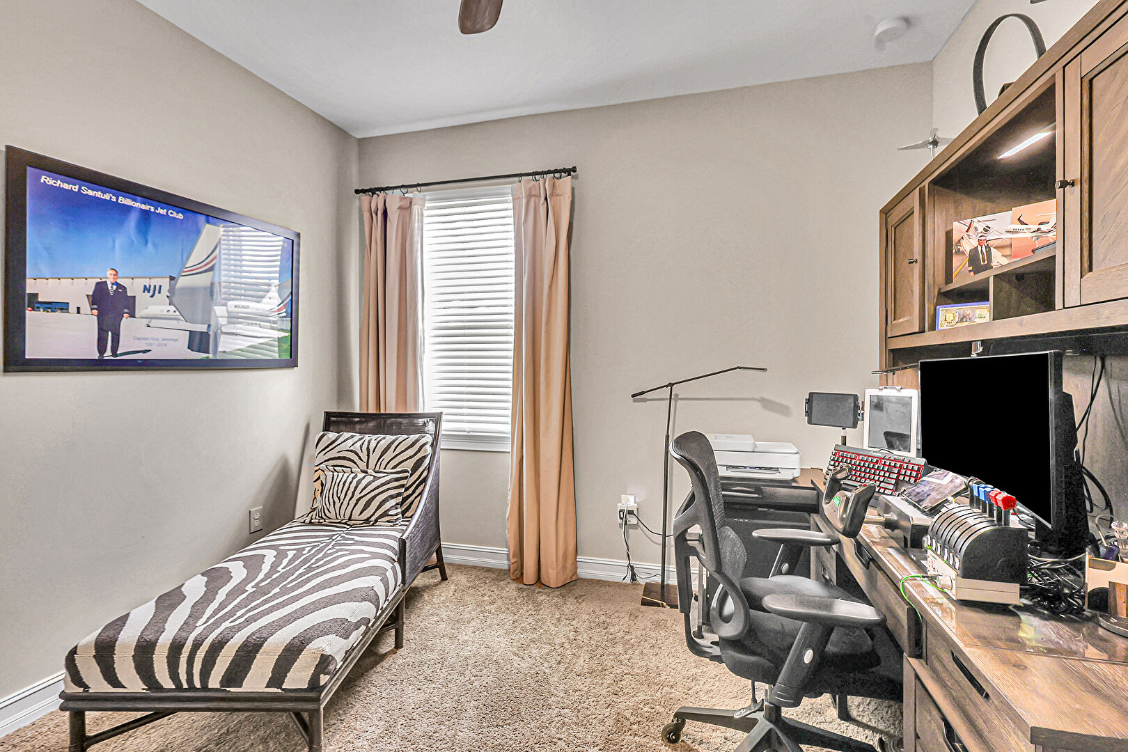 Baseboards Wall, Carpet, Ceiling Fan, Drywall, Natural Light, Office Area, Vent, Carpet, Drywall, Smoke Carbon Monoxide Detector