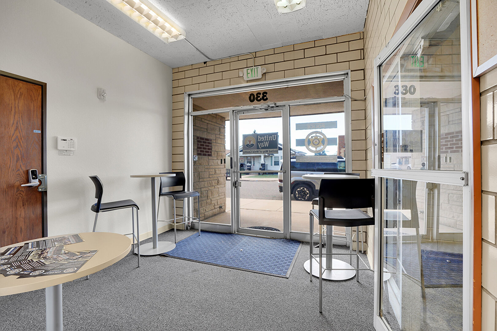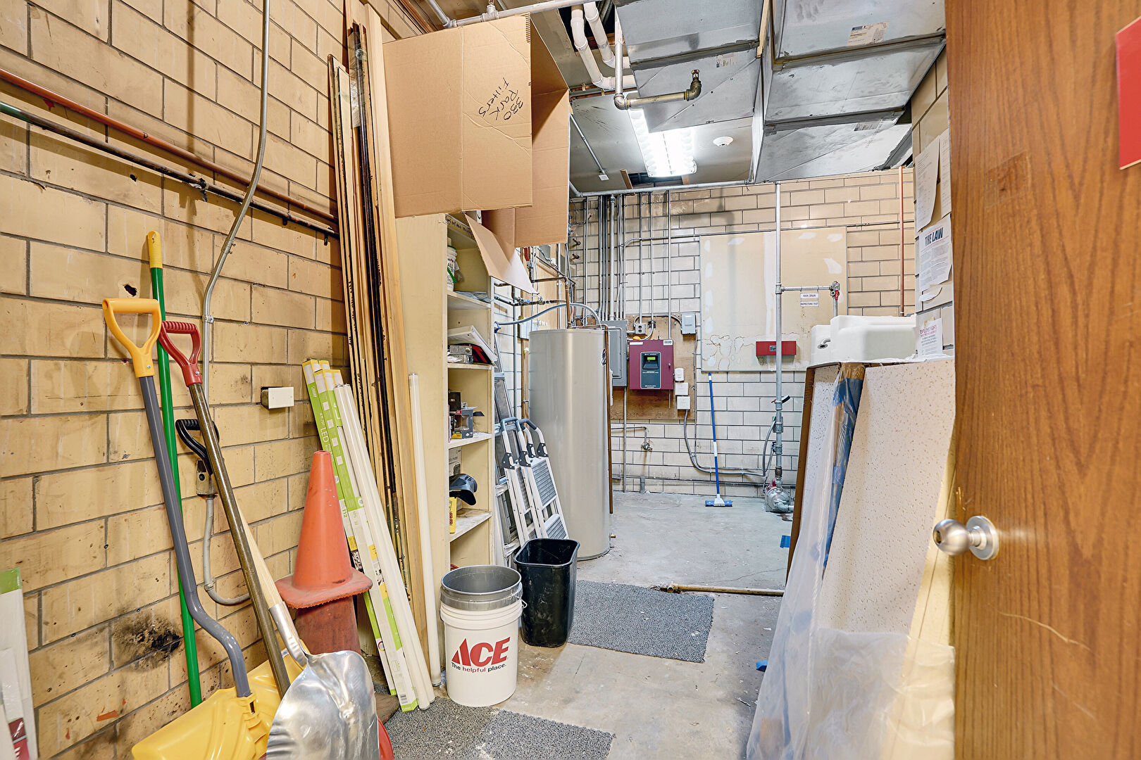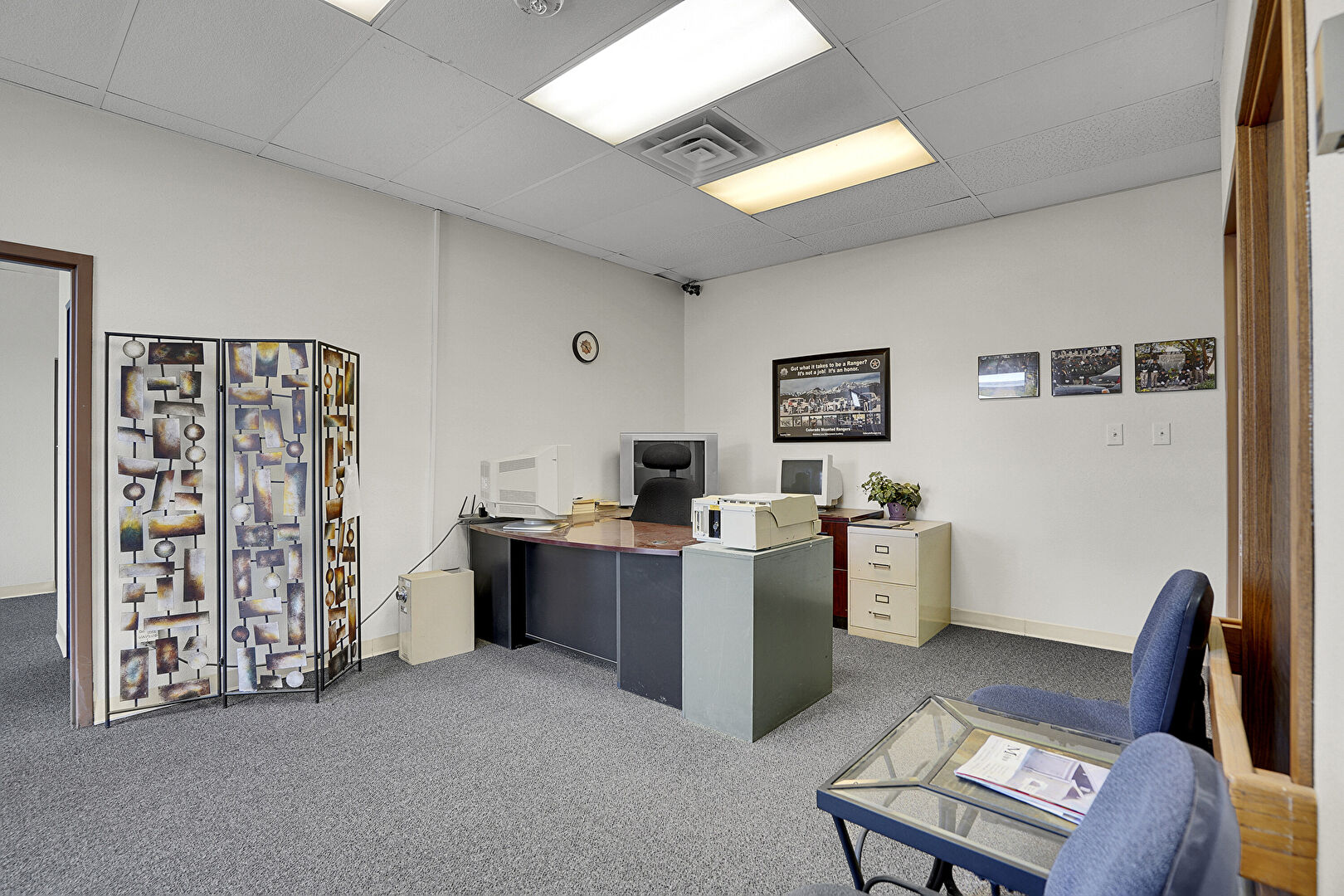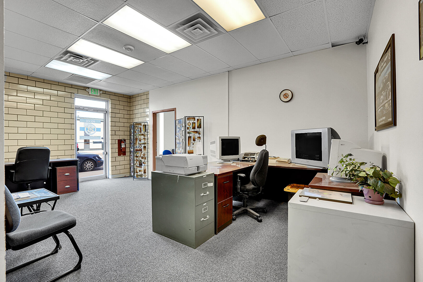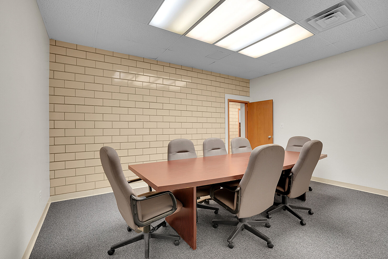 Accent Wall, Baseboard Radiator, Baseboards Wall, Carpet, Drop Ceiling, Drywall, Fire Extinguisher, Natural Light, Office Area, Textured Ceiling, Tile Wall, Vent, Wall Mounted Ac, Baseboards Wall, Brick Wall, Carpet, Drop Ceiling, Drywall, Fire Extinguisher, Natural Light, Office Area, Vent
