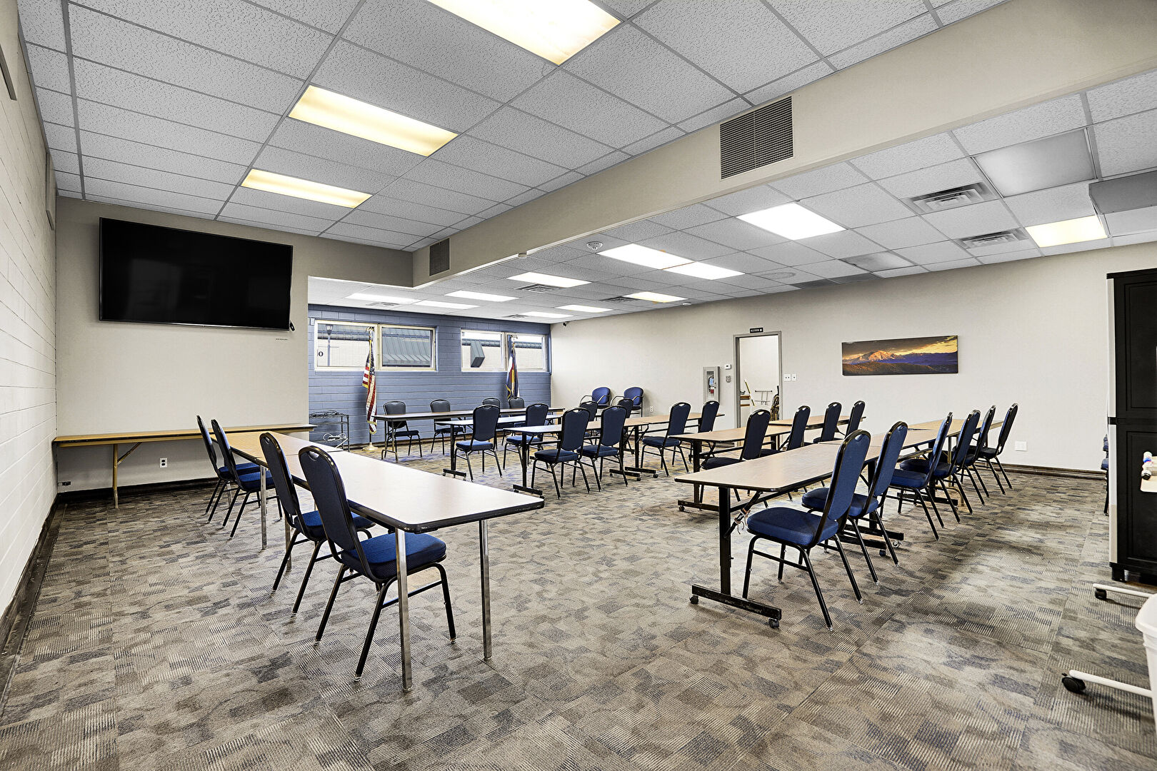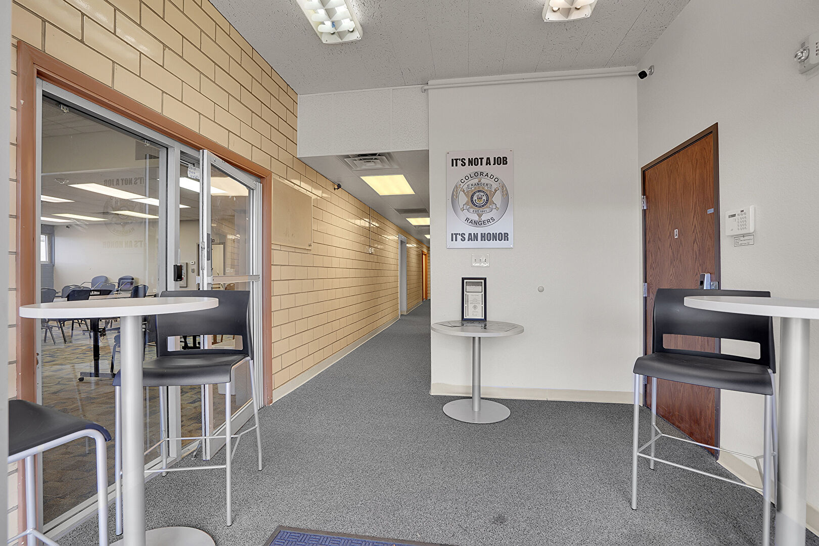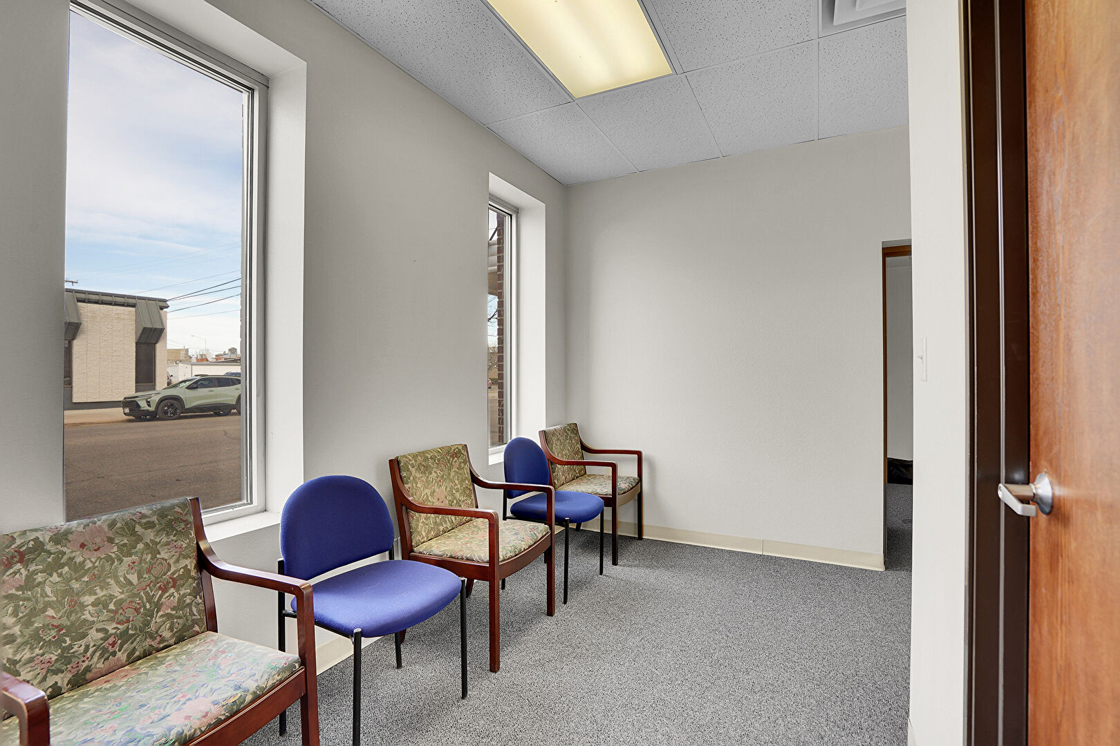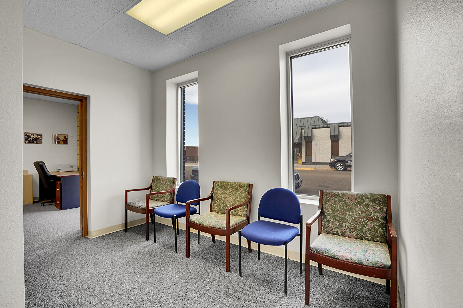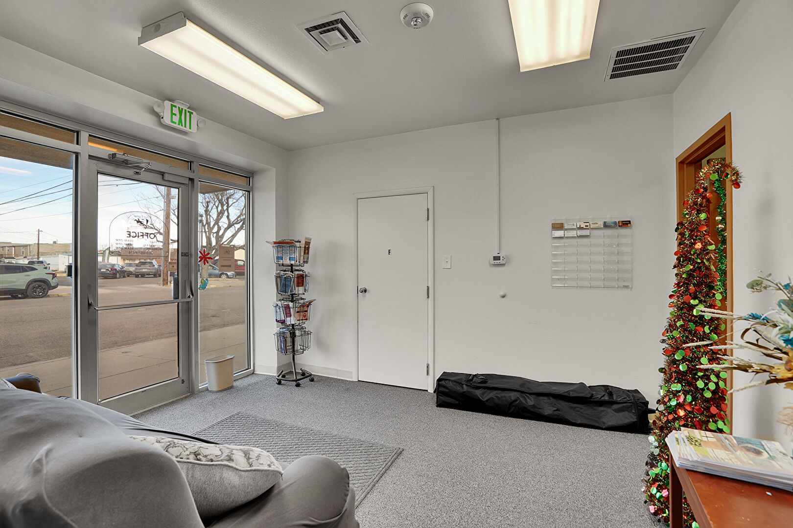 Accent Wall, Baseboard Radiator, Baseboards Wall, Carpet, Drop Ceiling, Drywall, Fire Extinguisher, Natural Light, Office Area, Textured Ceiling, Tile Wall, Vent, Wall Mounted Ac, Baseboards Wall, Brick Wall, Carpet, Drop Ceiling, Drywall, Fire Extinguisher, Natural Light, Office Area, Vent