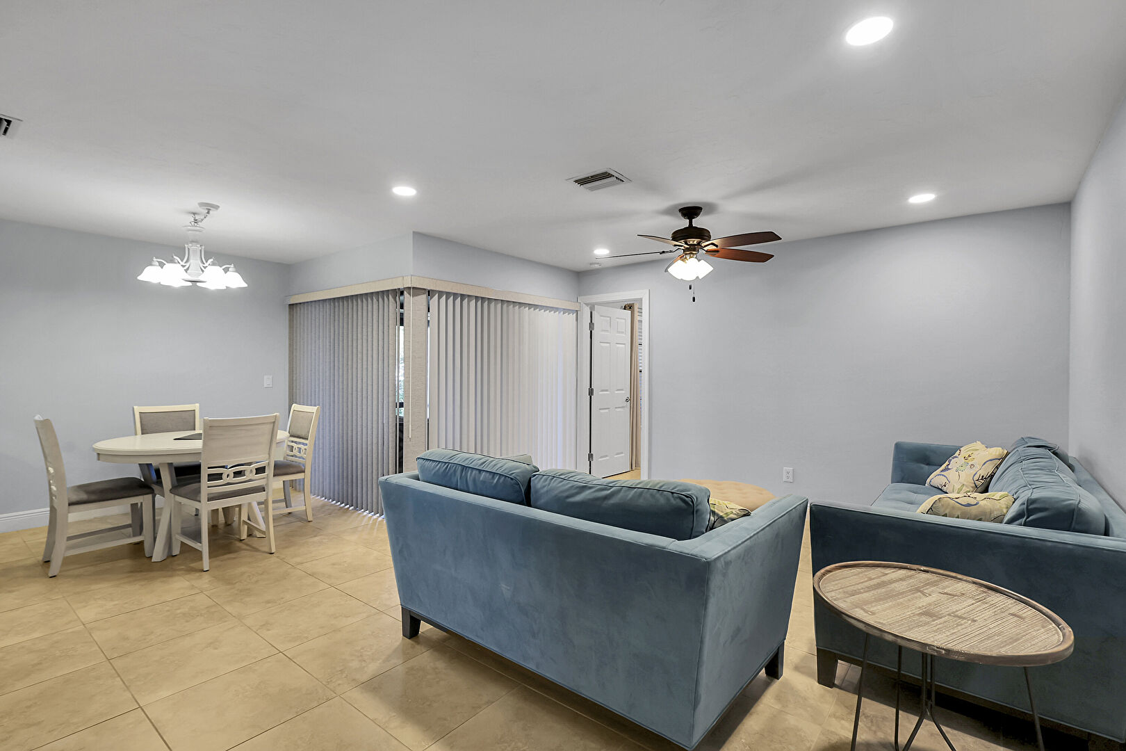 Baseboards Wall, Drywall, Natural Light, Notable Chandelier, Recessed Lighting, Tile Floor, Vent, Ceiling Fan, Drywall, Notable Chandelier