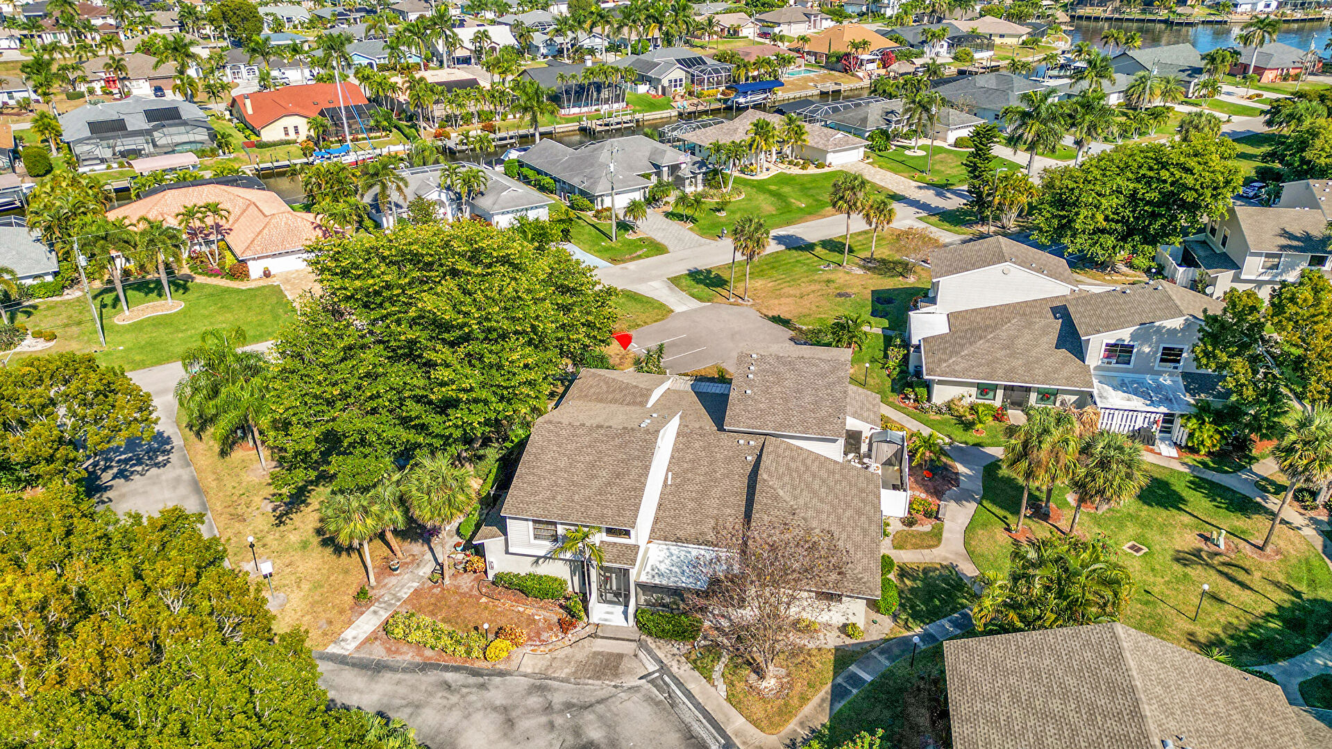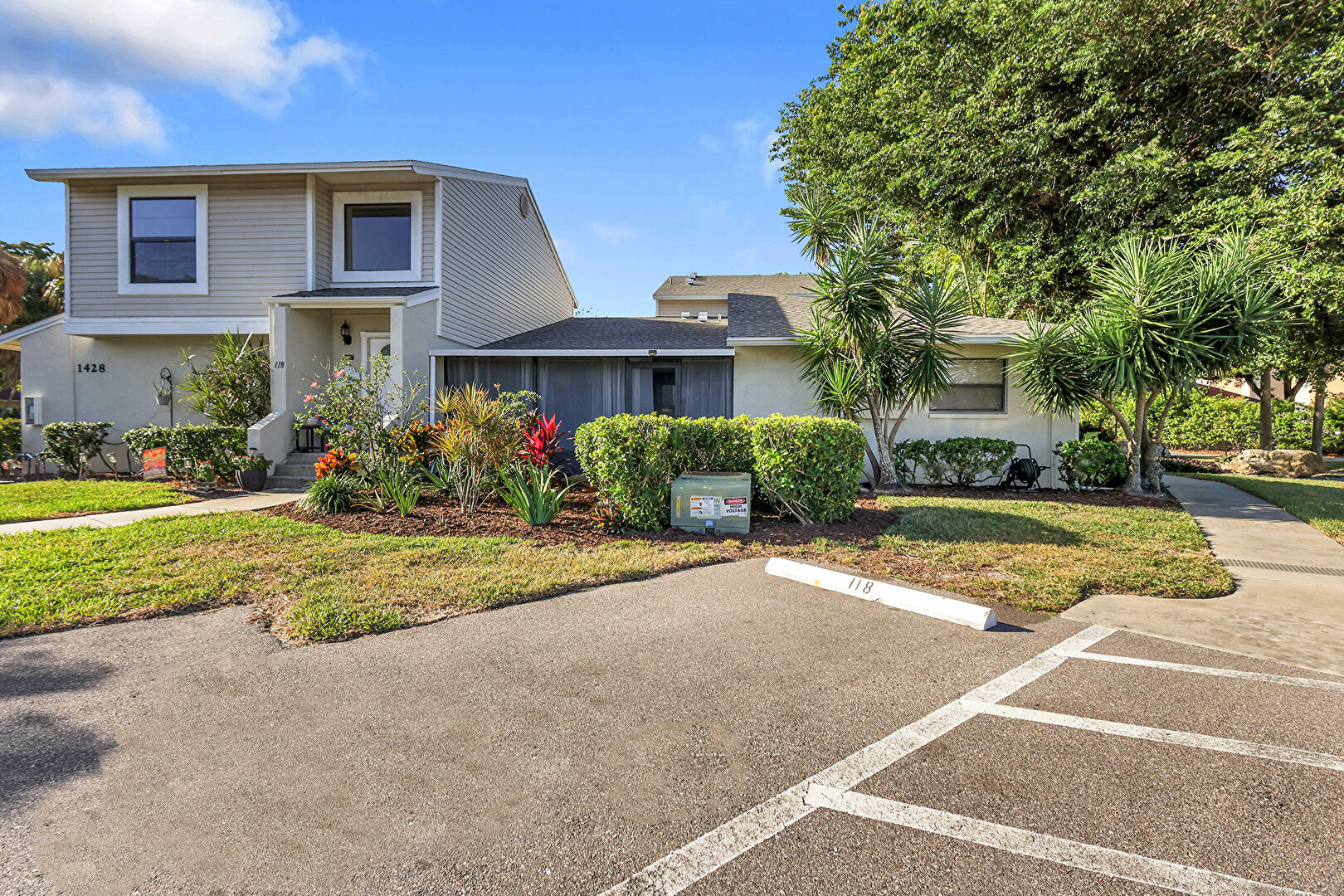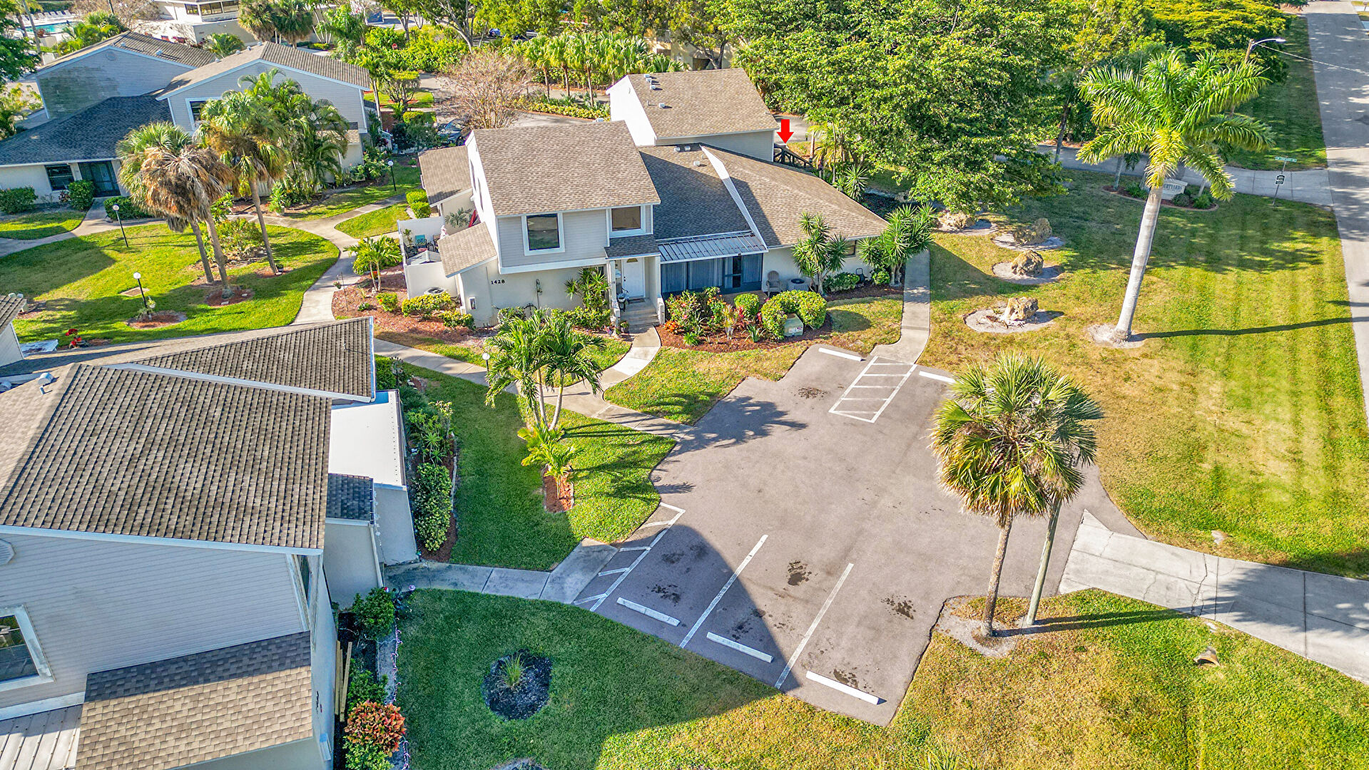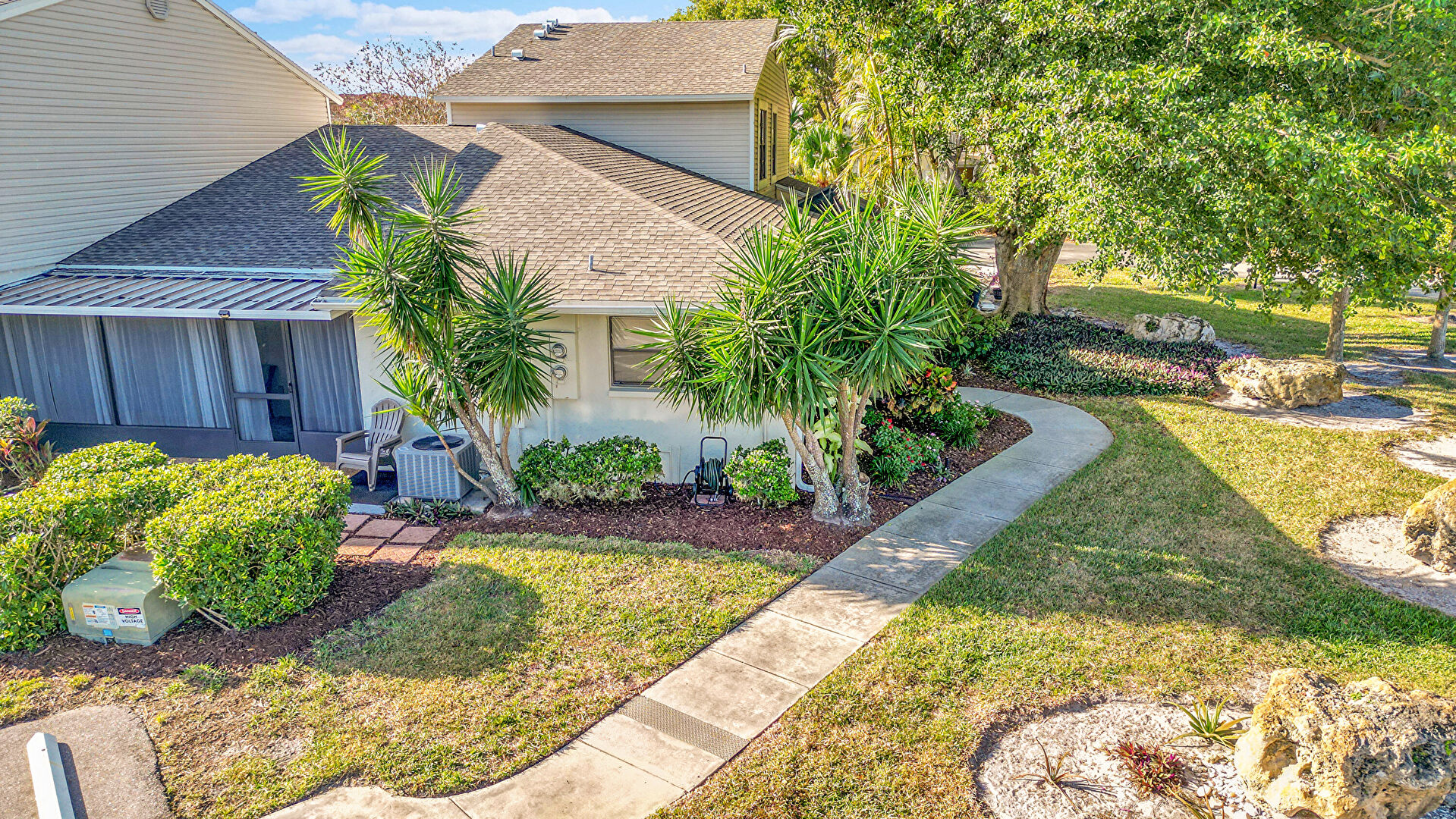 Downspout, Gutters, Lanai, Lawn, Pad Mount Transformer, Parking Lot, Shingle Roof, Stucco Siding, Gutters, Horizontal Siding, Shingle Roof, Stucco Siding