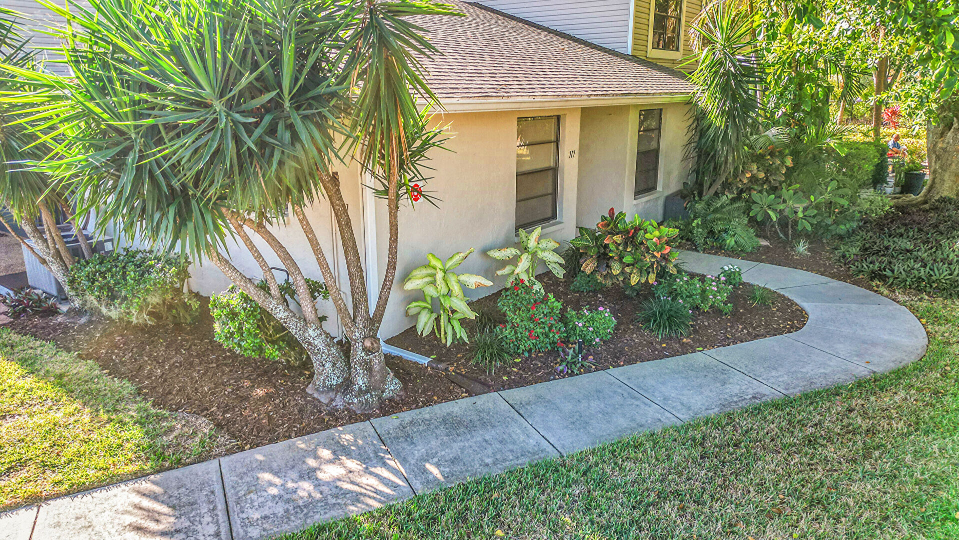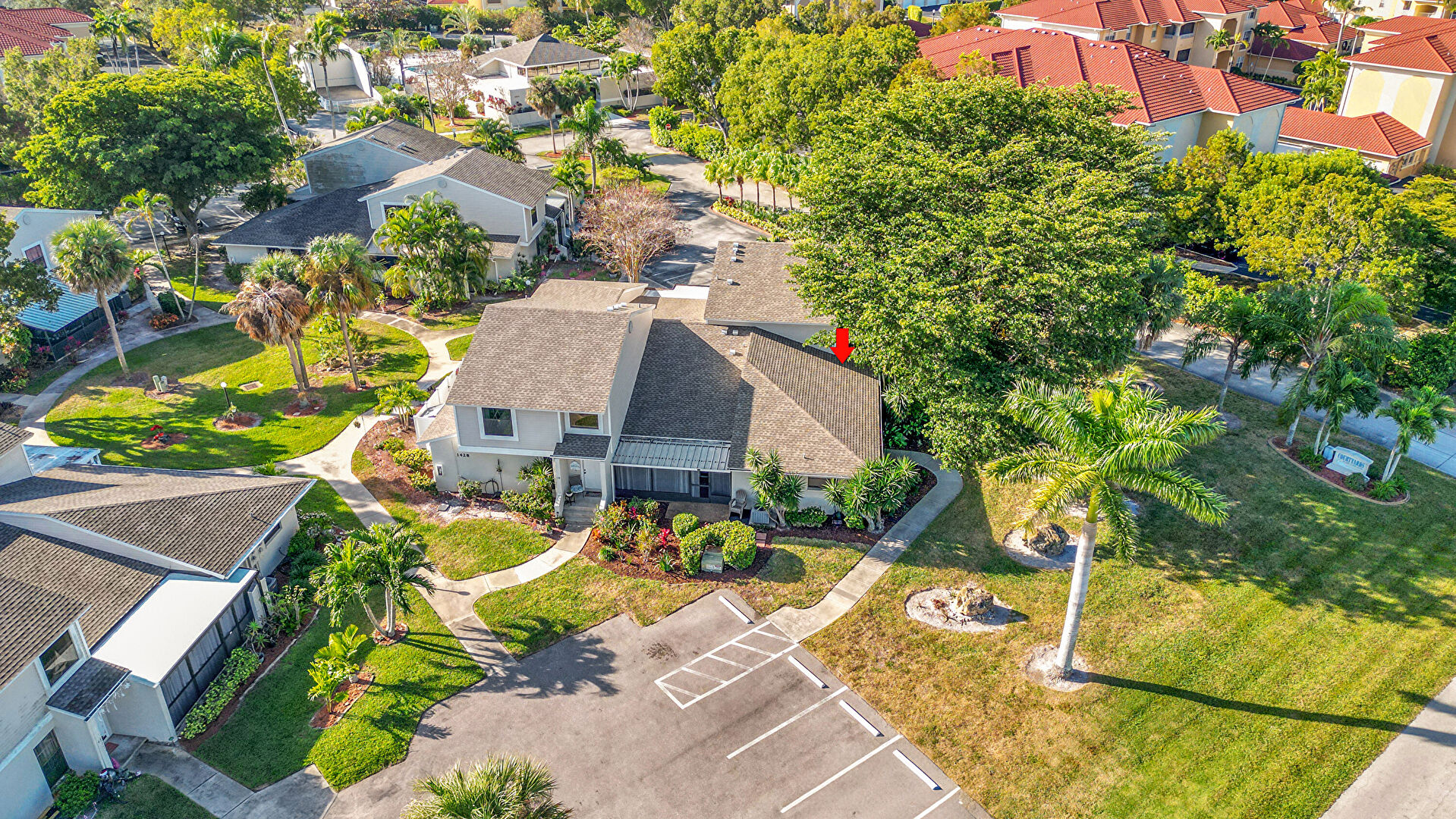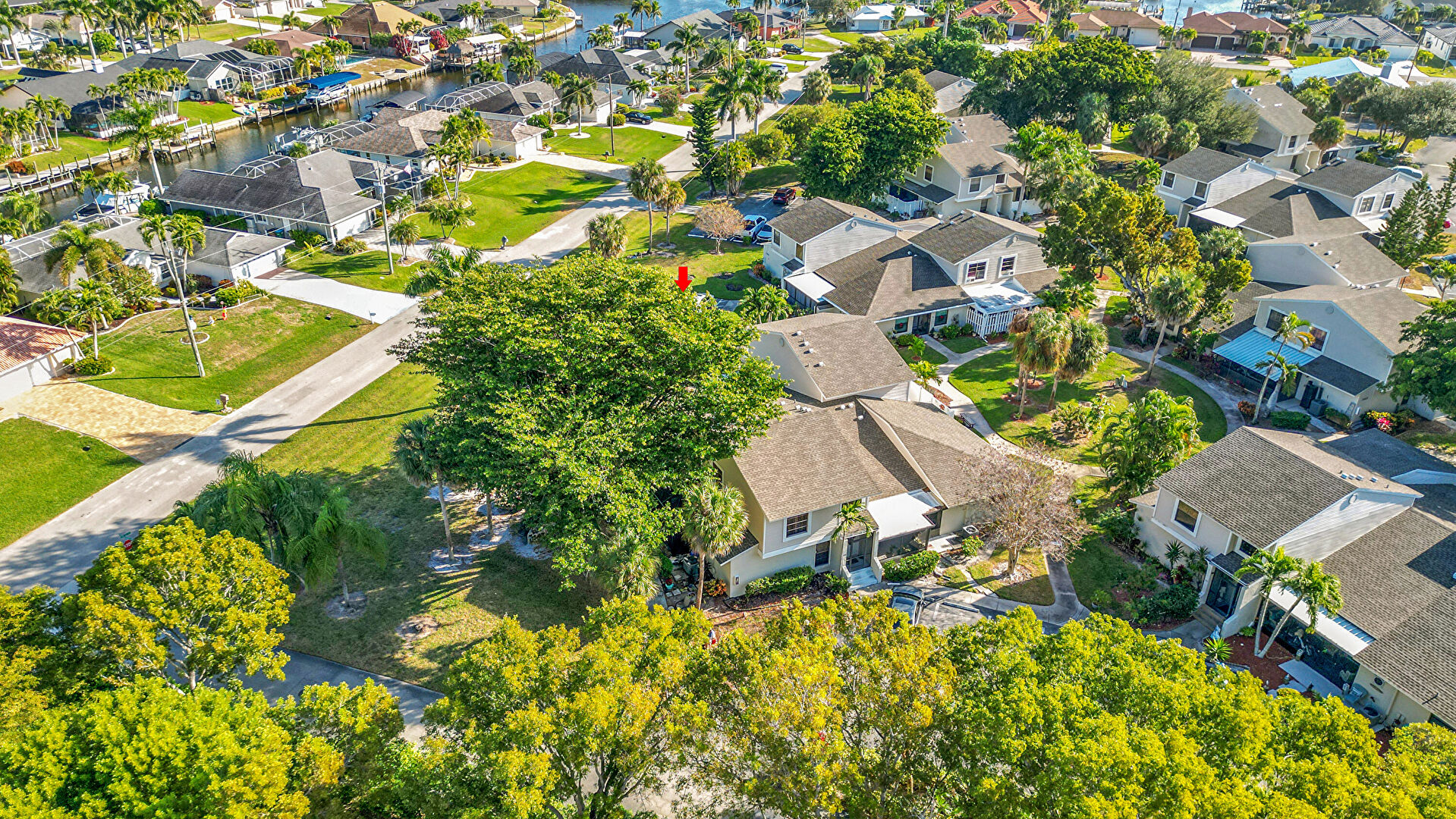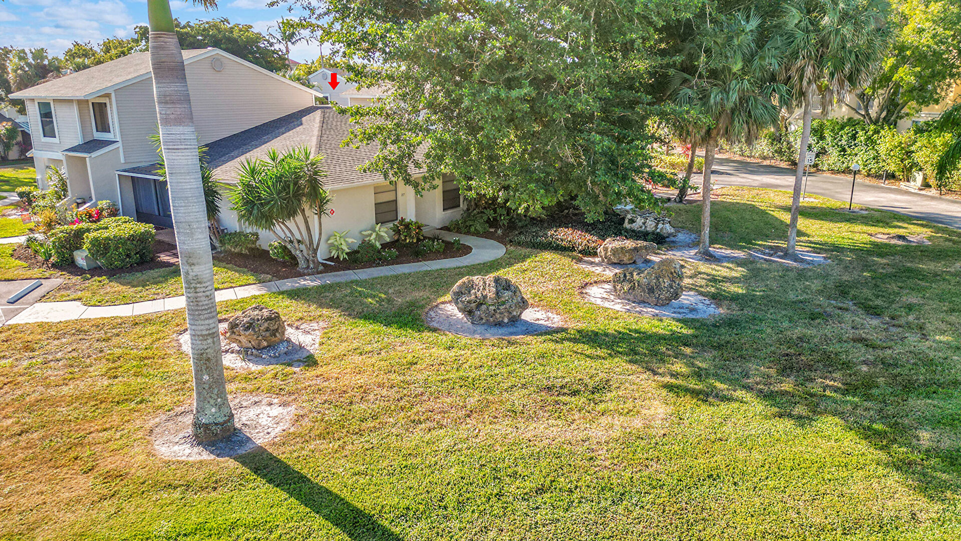 Downspout, Gutters, Lanai, Lawn, Pad Mount Transformer, Parking Lot, Shingle Roof, Stucco Siding, Gutters, Horizontal Siding, Shingle Roof, Stucco Siding