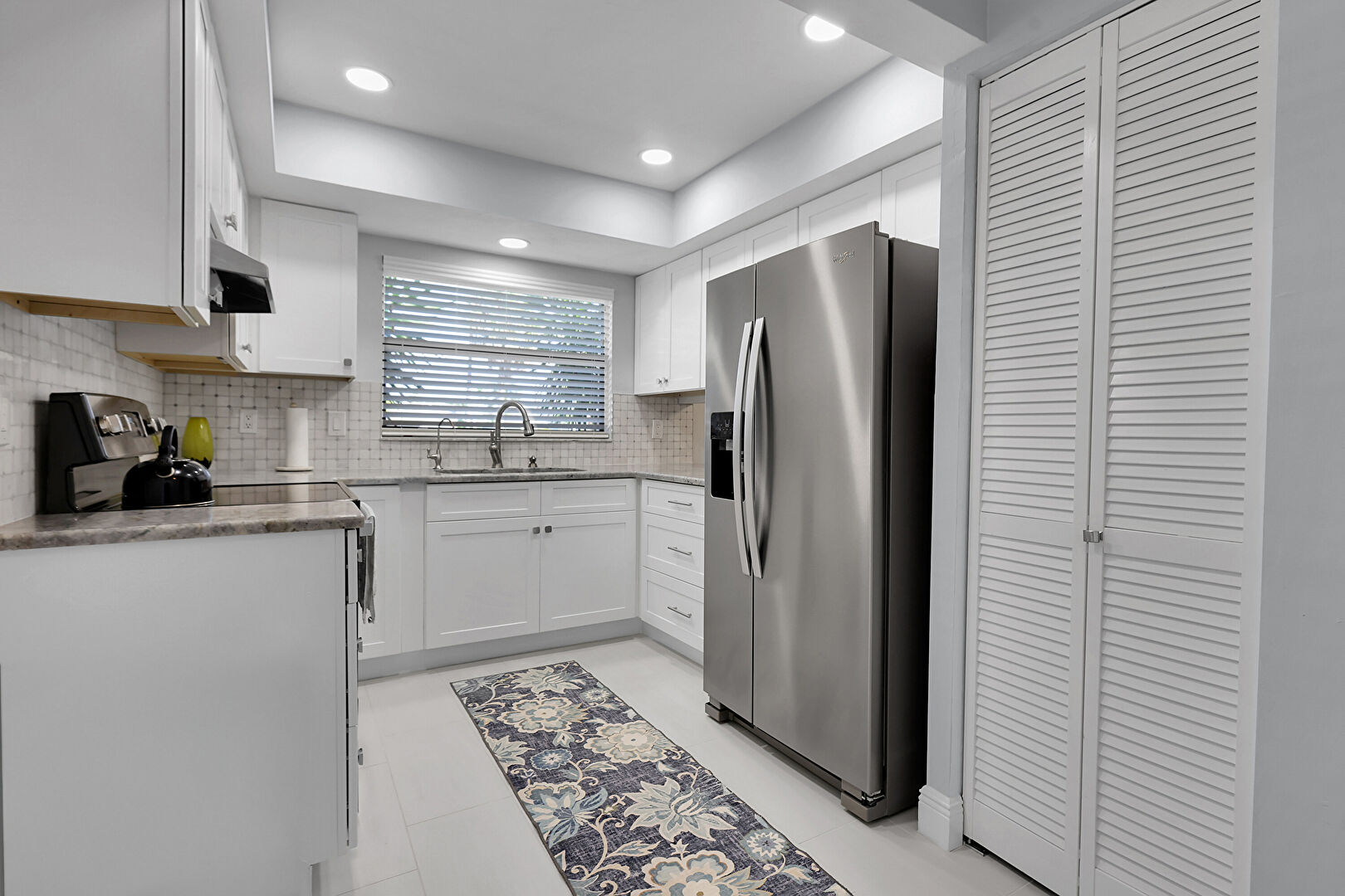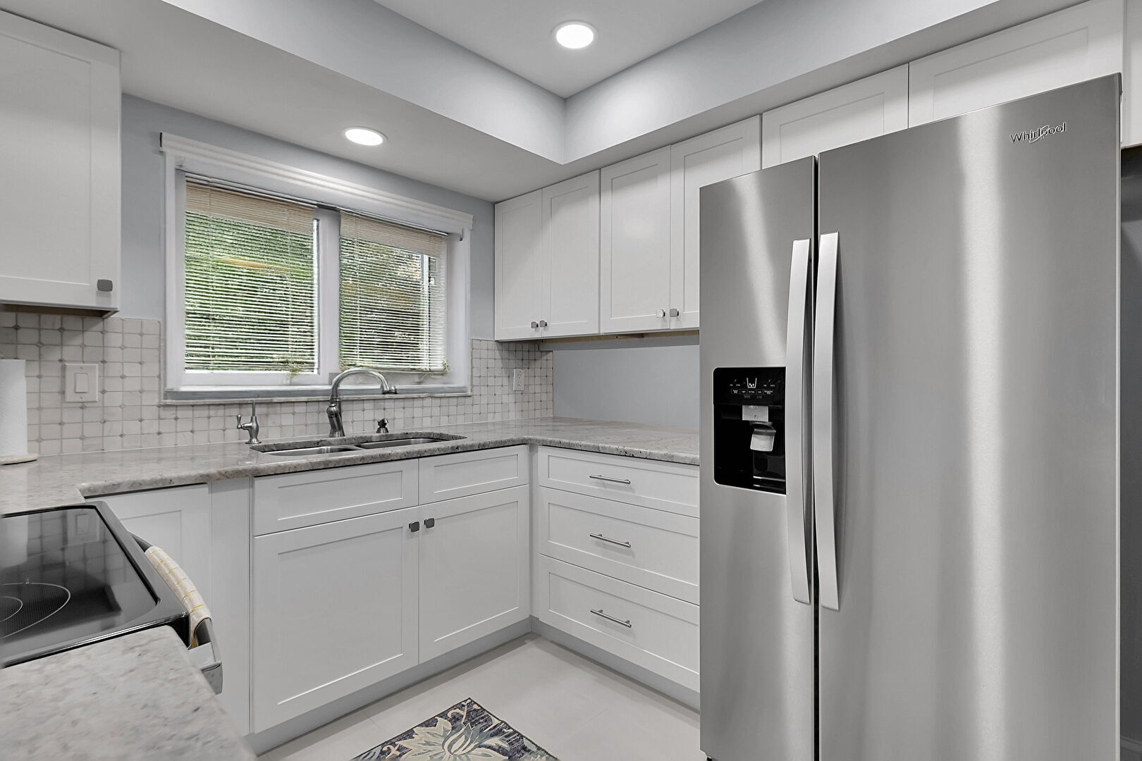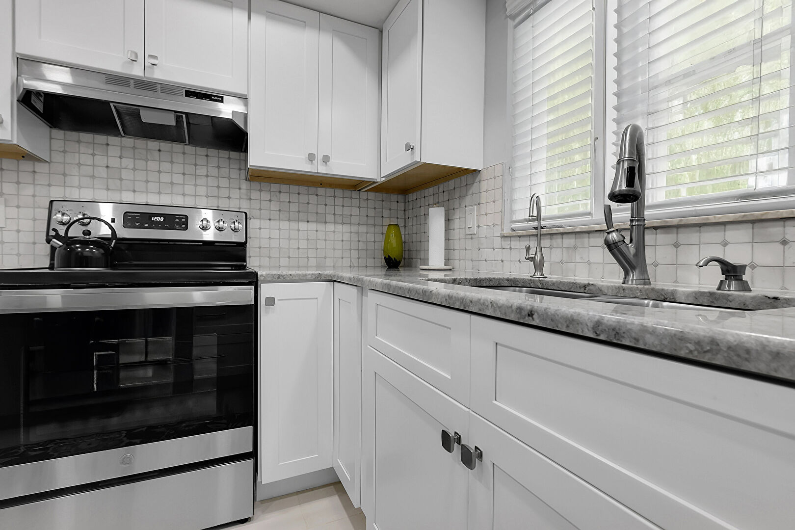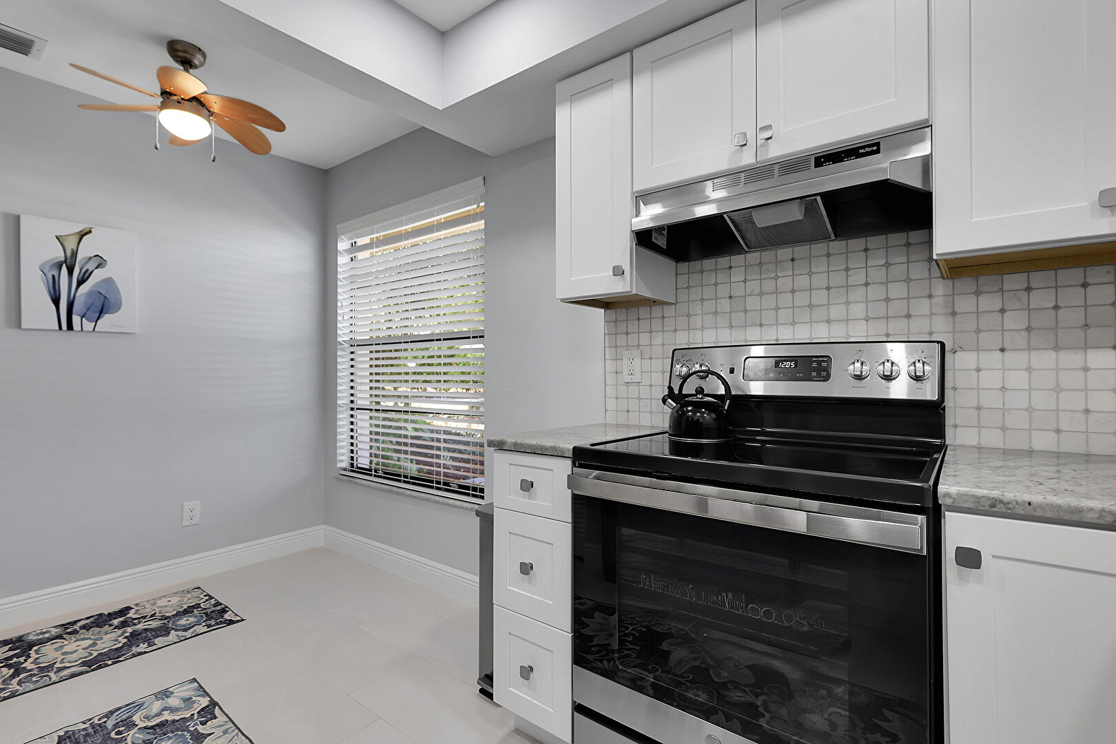 Baseboards Wall, Ceiling Fan, Drywall, Natural Light, Recessed Lighting, Shaker Cabinets, Stone Countertops, Tile Floor, Tray Ceiling, U Shaped Kitchen, Vent, Vinyl Floor, Baseboards Wall, Natural Light, Recessed Lighting, Stone Countertops, Tile Floor, U Shaped Kitchen