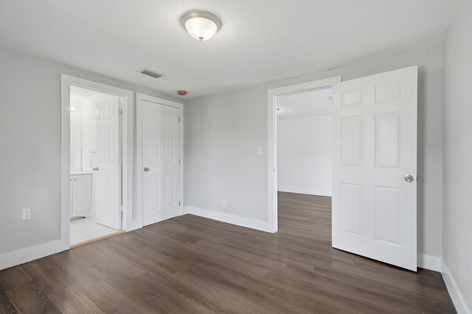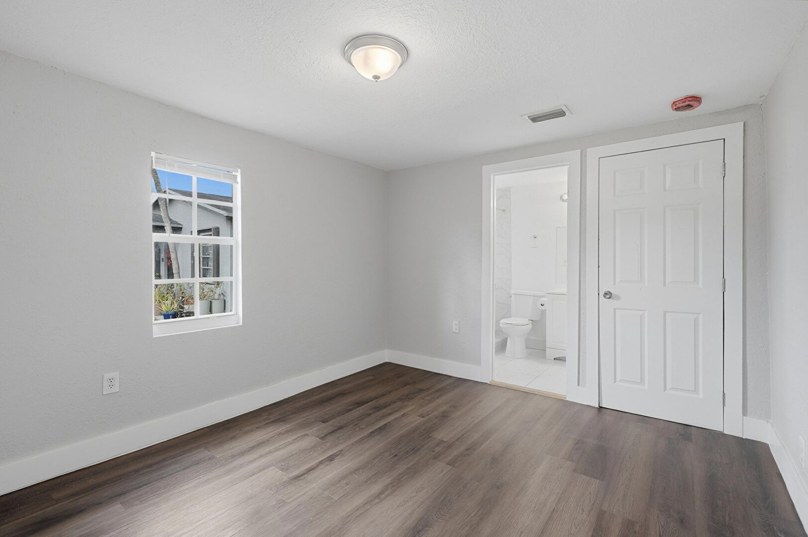 Baseboards Wall, Closet, Drywall, Ensuite Bathroom, Fire Alarm, Natural Light, Textured Ceiling, Vent, Wood Finish Floor, Baseboards Wall, Textured Ceiling