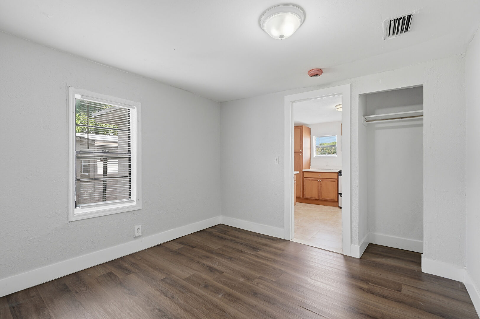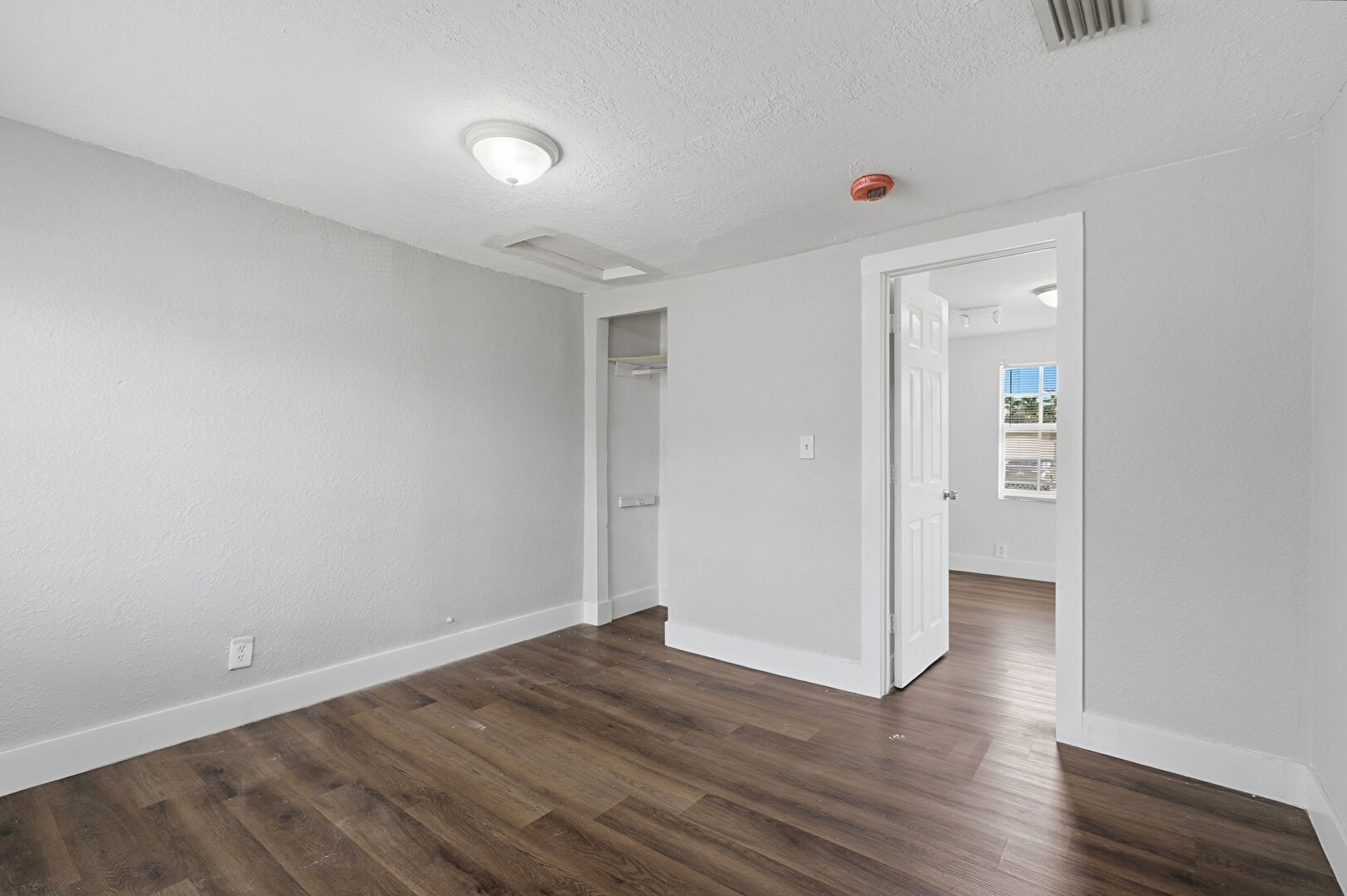 Baseboards Wall, Closet, Drywall, Fire Alarm, Natural Light, Textured Ceiling, Textured Wall, Wood Finish Floor, Textured Ceiling, Vent