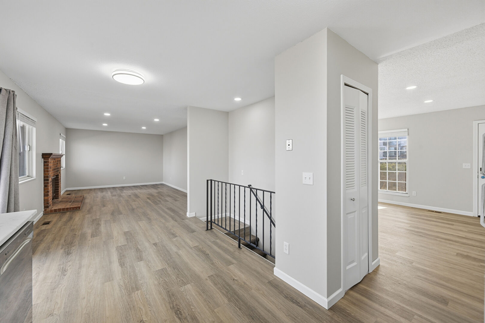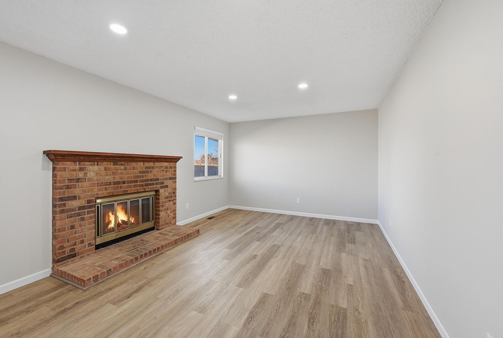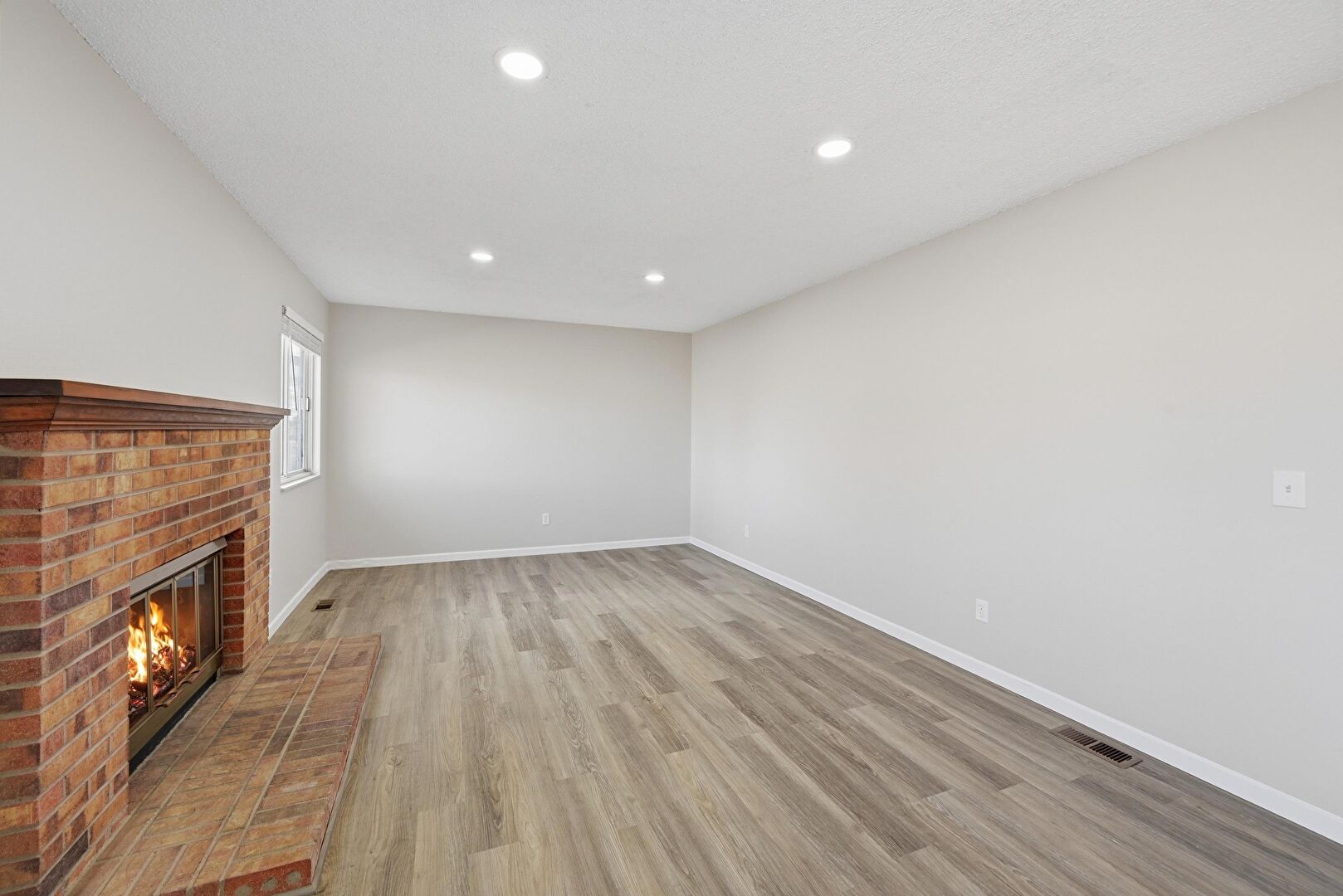 Baseboards Wall, Drywall, Fireplace, Natural Light, Recessed Lighting, Textured Ceiling, Vent, Wood Finish Floor, Drywall, Fireplace, Vent