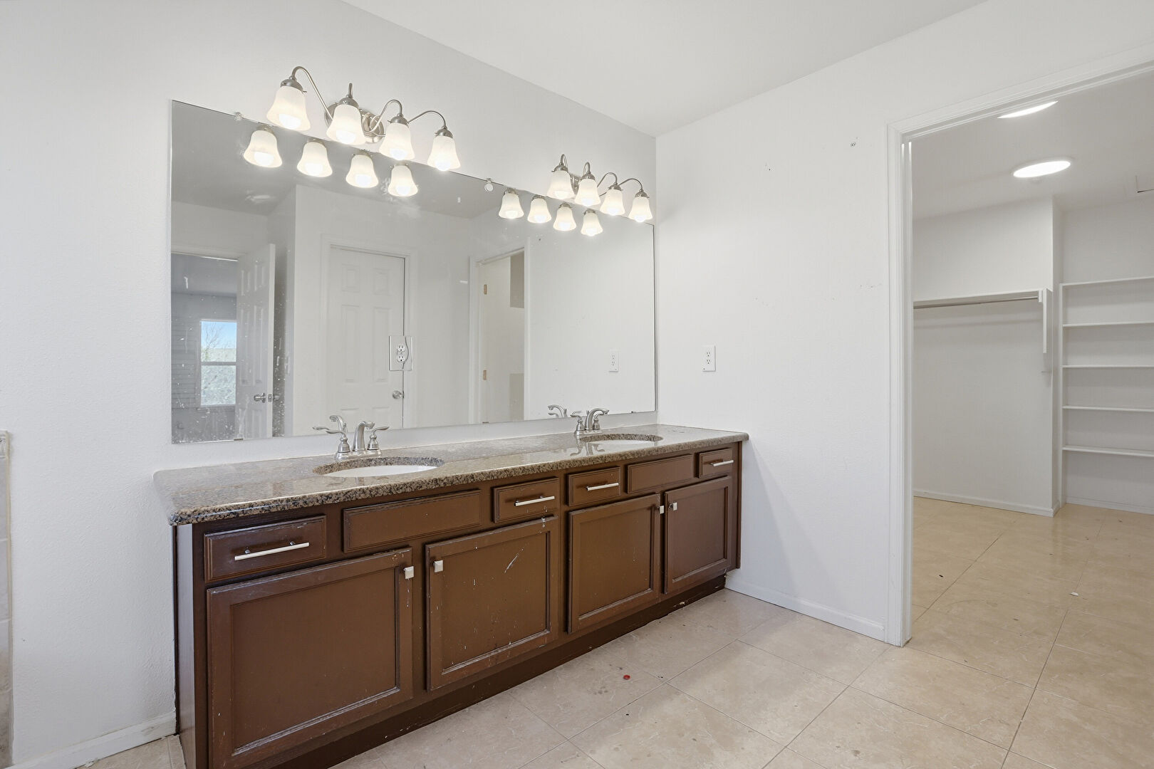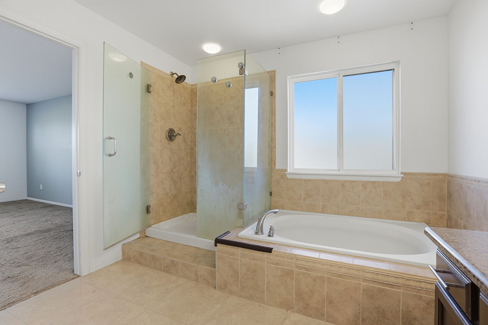 Baseboards Wall, Carpet, Double Vanity, Drywall, Full Bathroom, Natural Light, Tile Floor, Vanity, Vent, Walk In Closet, Wood Finish Floor, Baseboards Wall, Combined Bath Shower, Drywall, Tile Floor