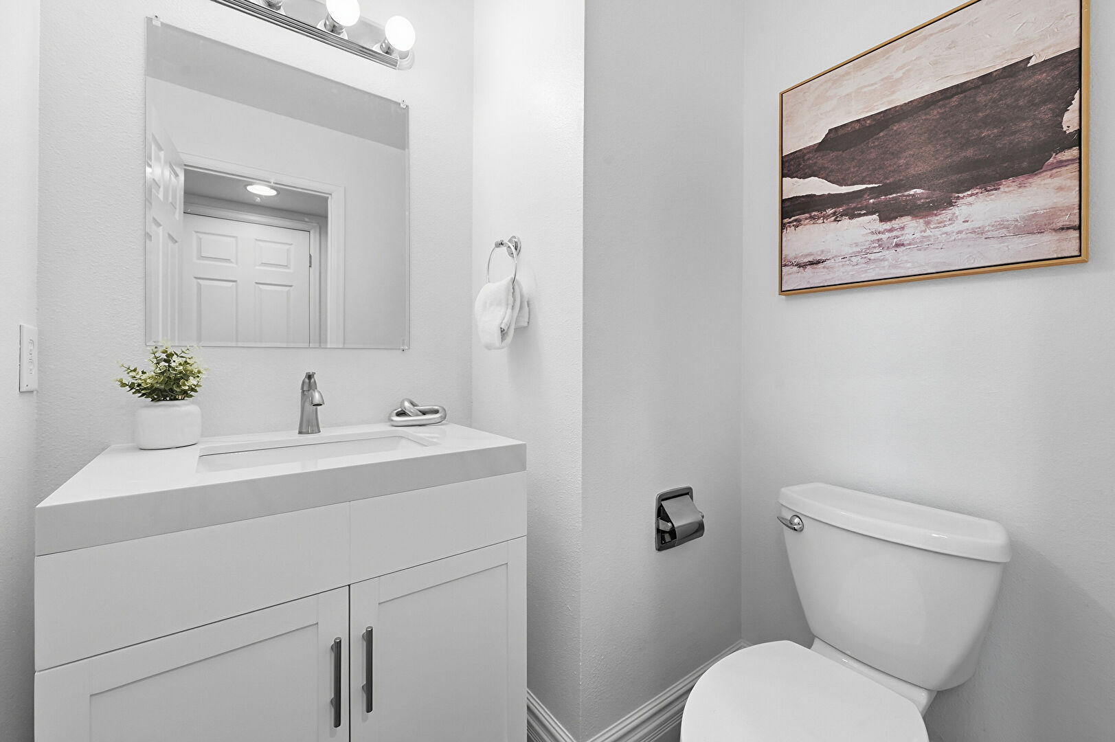 Baseboards Wall, Drywall, Full Bathroom, Half Bathroom, Tile Floor, Vanity, Baseboards Wall, Combined Bath Shower, Wood Finish Floor