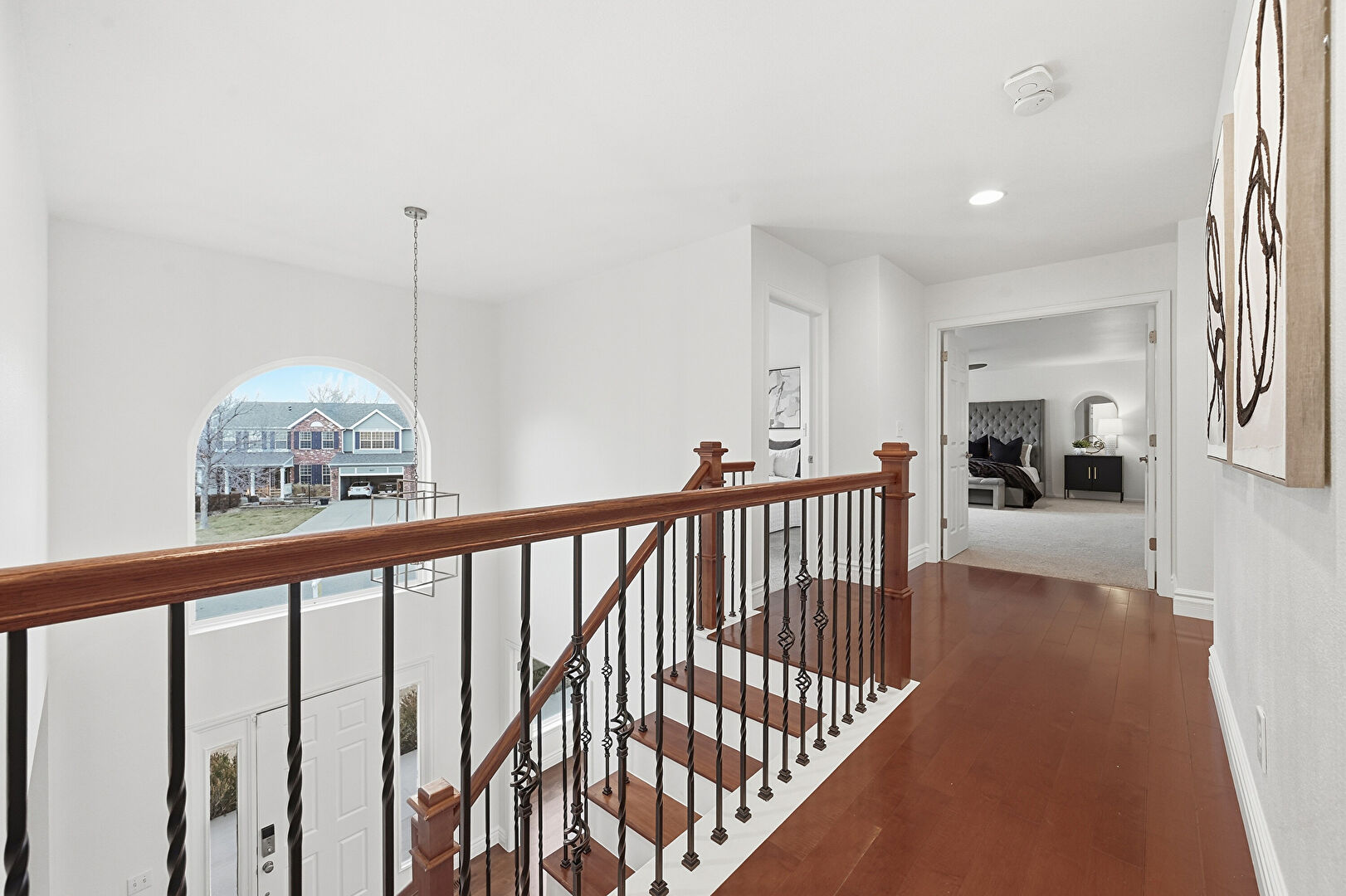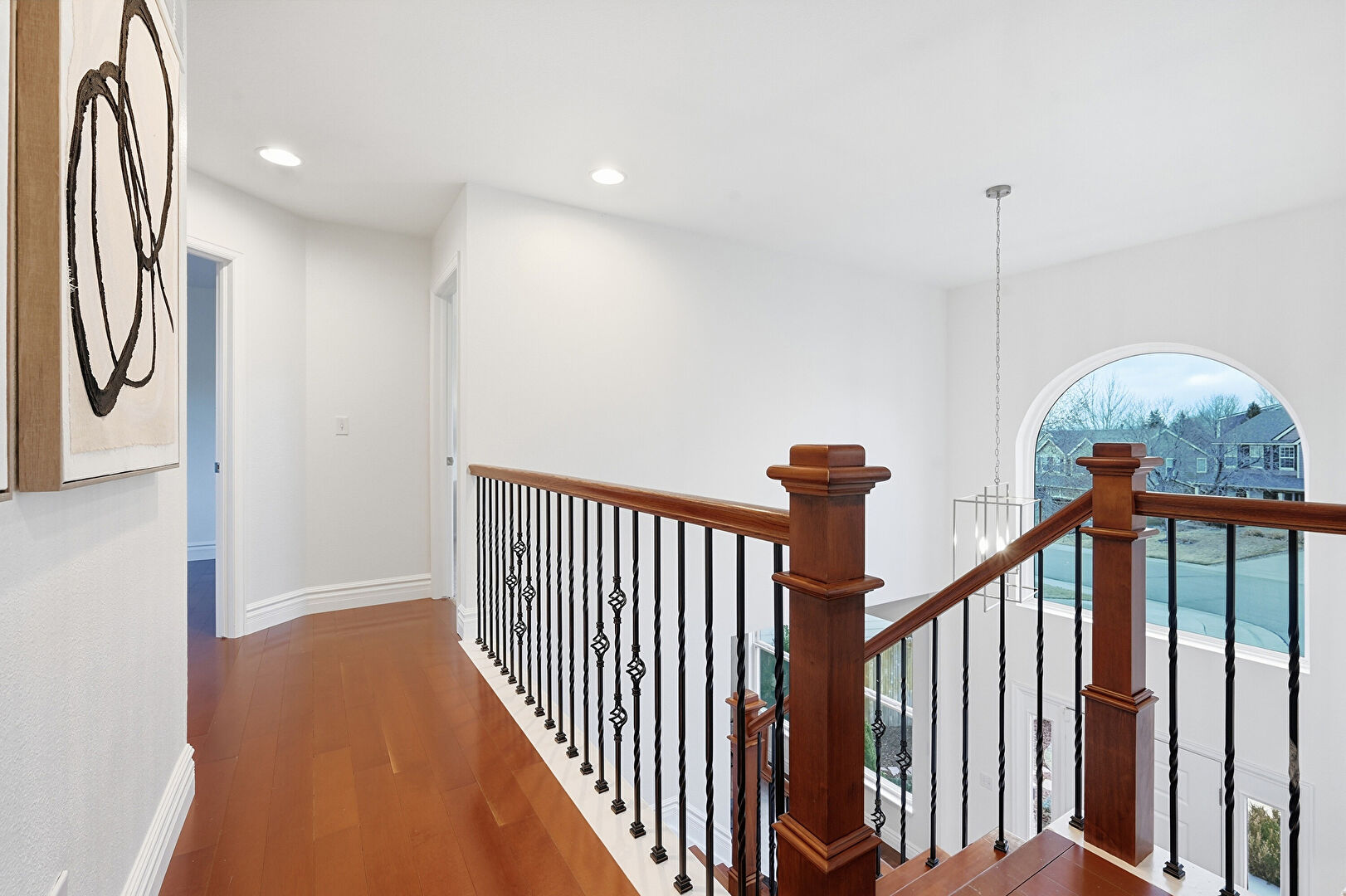 Baseboards Wall, Drywall, Natural Light, Notable Chandelier, Smoke Carbon Monoxide Detector, Upstairs Landing, Wood Finish Floor, Recessed Lighting