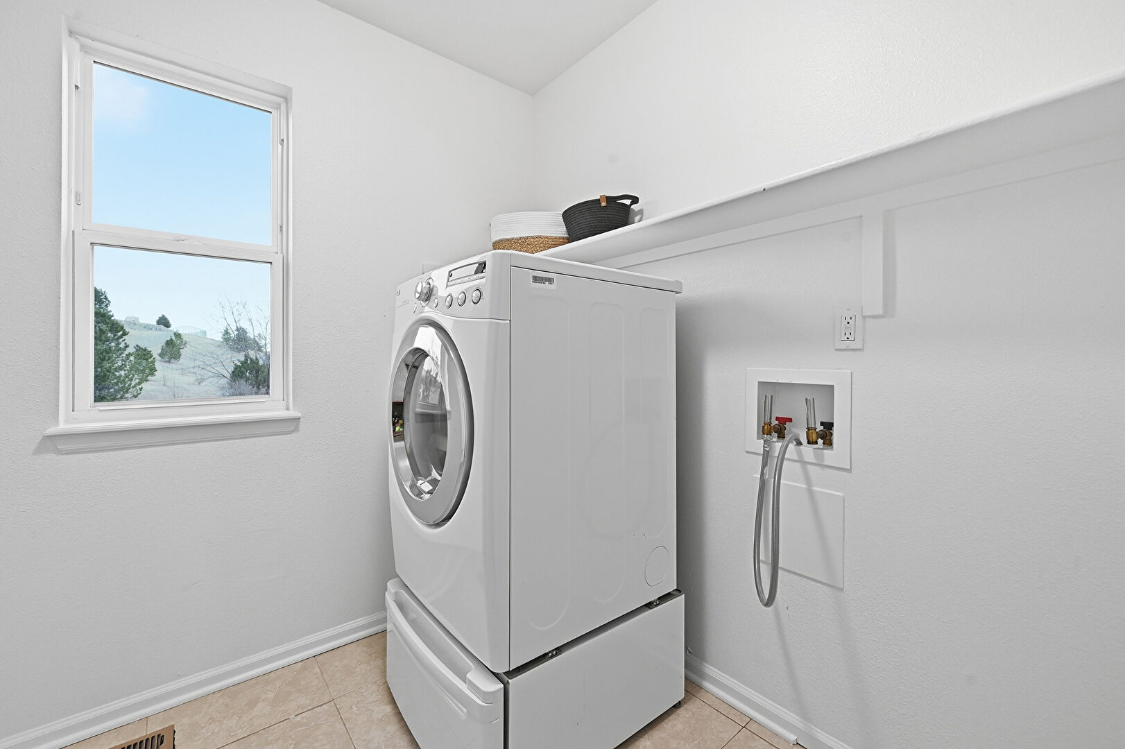 Baseboards Wall, Drywall, Laundry, Natural Light, Washer Dryer, Washer Hookup, Tile Floor