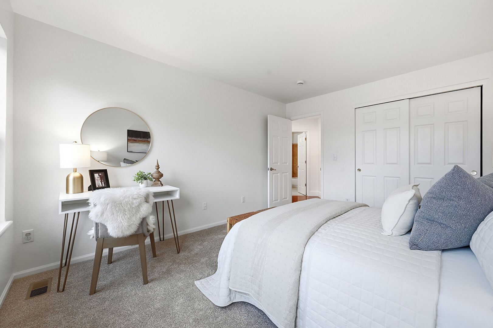 Baseboards Wall, Carpet, Ceiling Fan, Closet, Drywall, Natural Light, Wood Finish Floor, Closet, Natural Light, Vent
