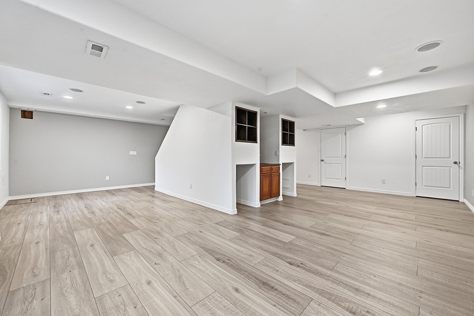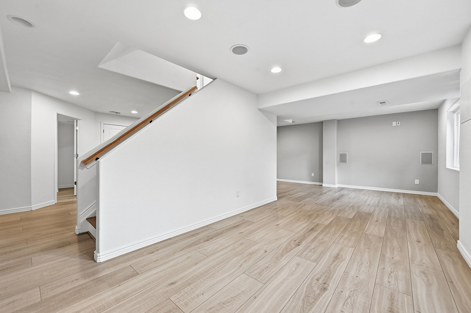Baseboards Wall, Basement, Drywall, Natural Light, Recessed Lighting, Stairs, Vent, Wood Finish Floor, Baseboards Wall, Wood Finish Floor