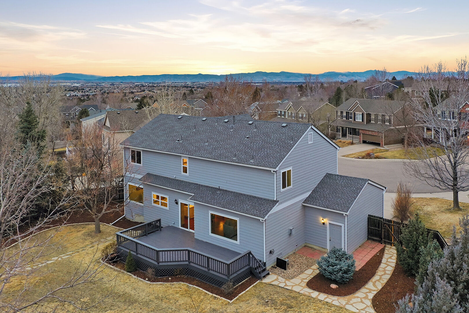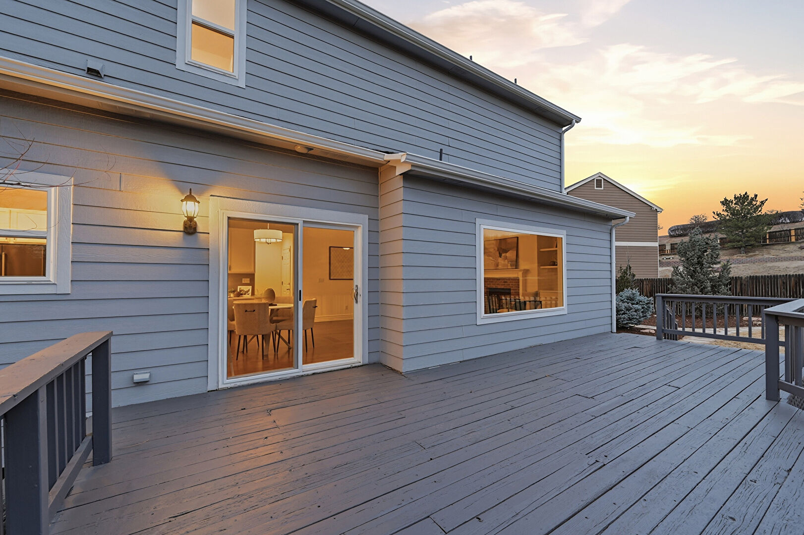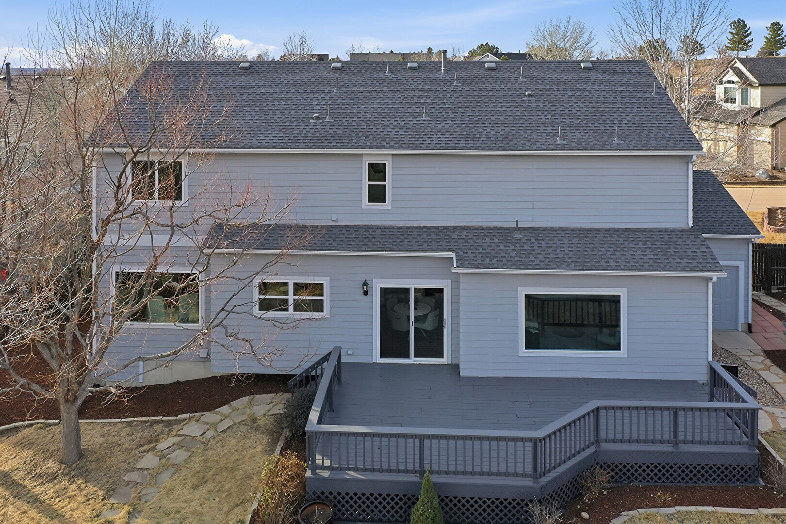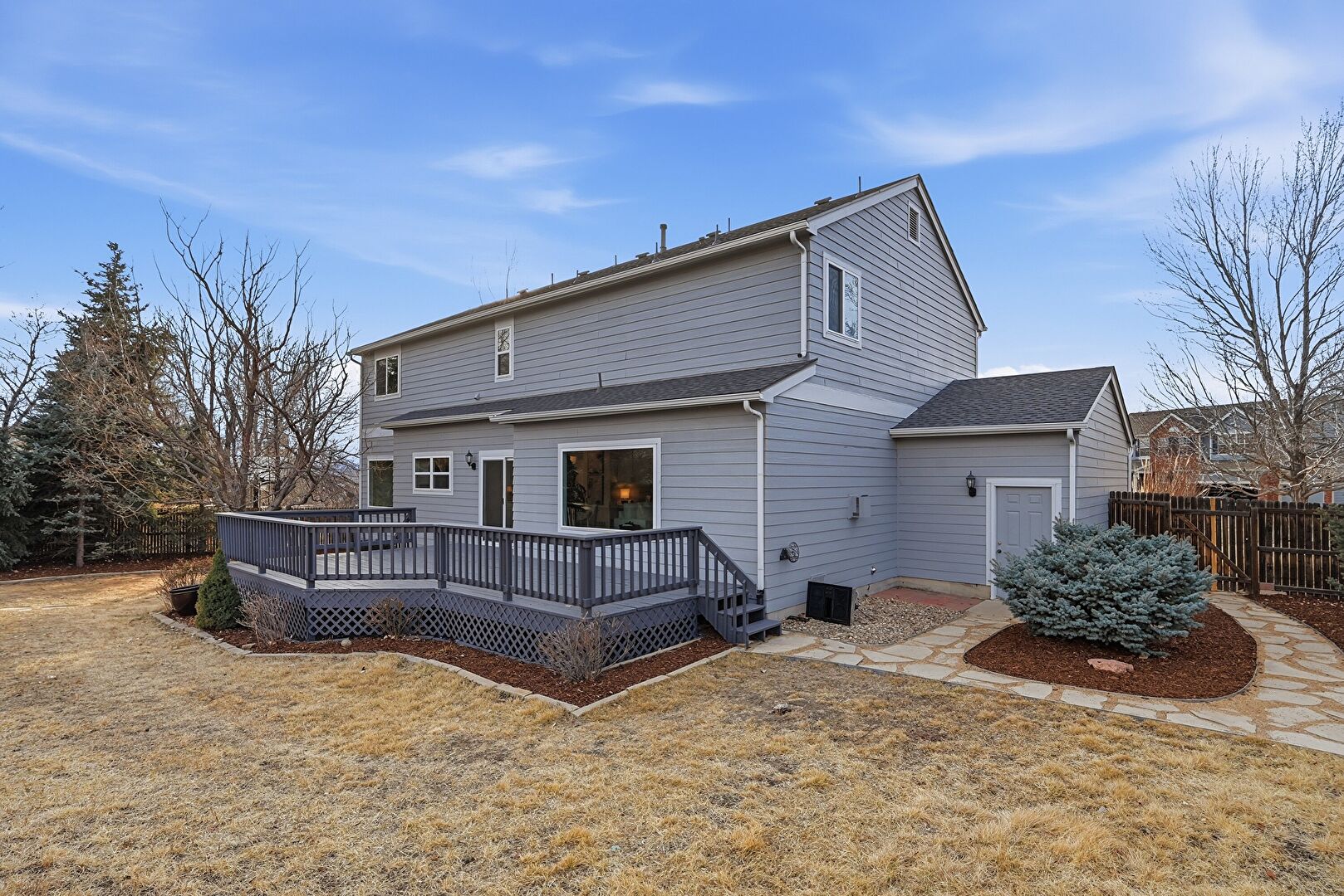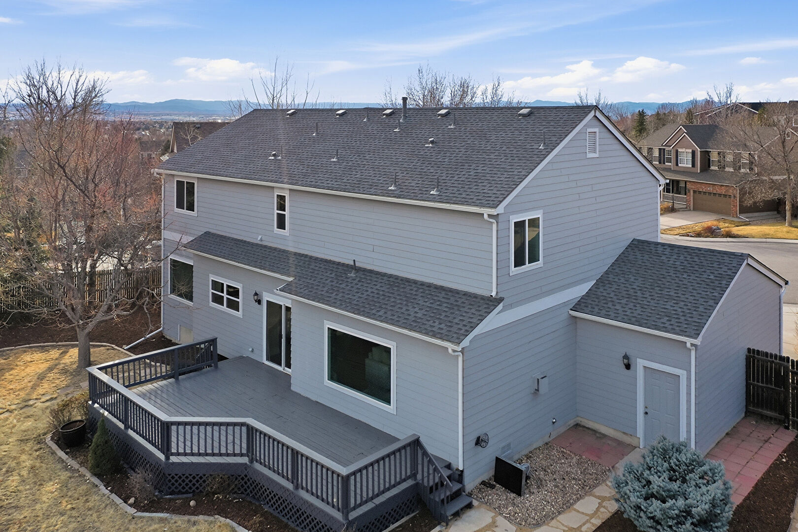 Central Ac, Concrete Foundation, Deck, Downspout, Fence, Gutters, Horizontal Siding, Lawn, Mountain View, Patio, Residential View, Shingle Roof, Concrete Foundation, Downspout, Fence, Gutters, Horizontal Siding, Lawn, Shingle Roof