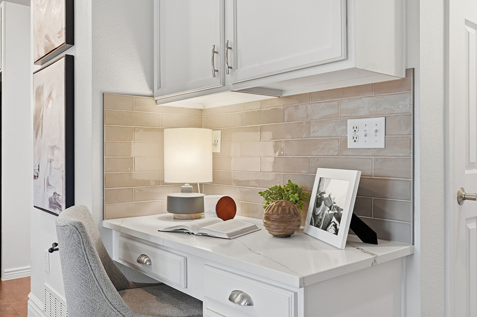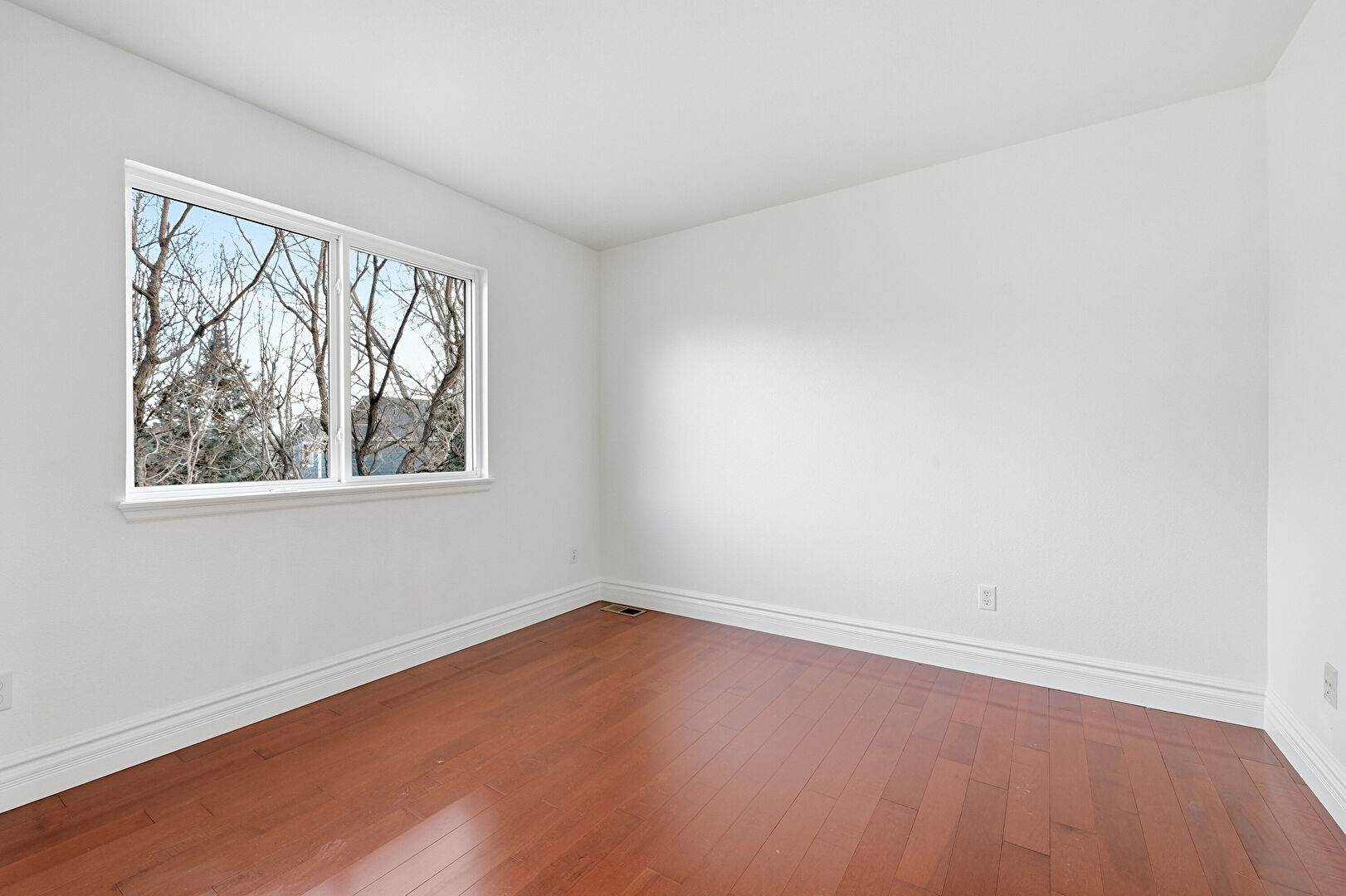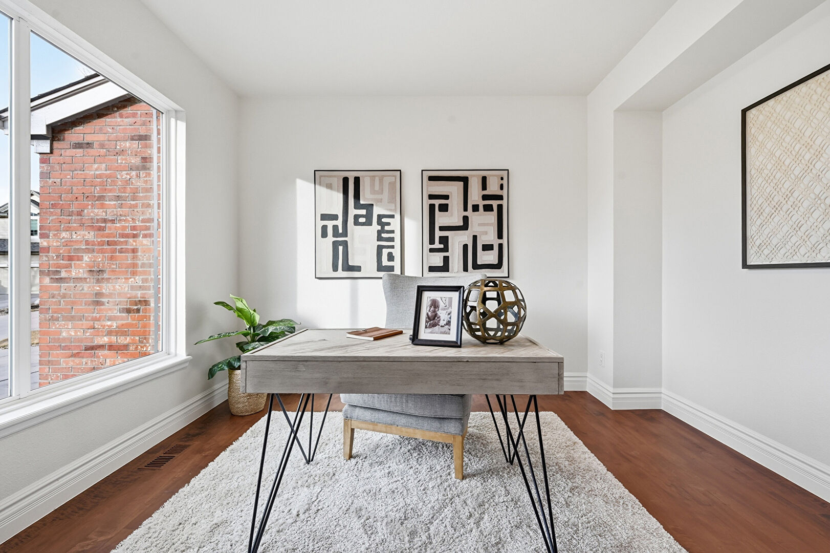 Baseboards Wall, Drywall, Natural Light, Office Area, Residential View, Vent, Wood Finish Floor, Baseboards Wall, Natural Light
