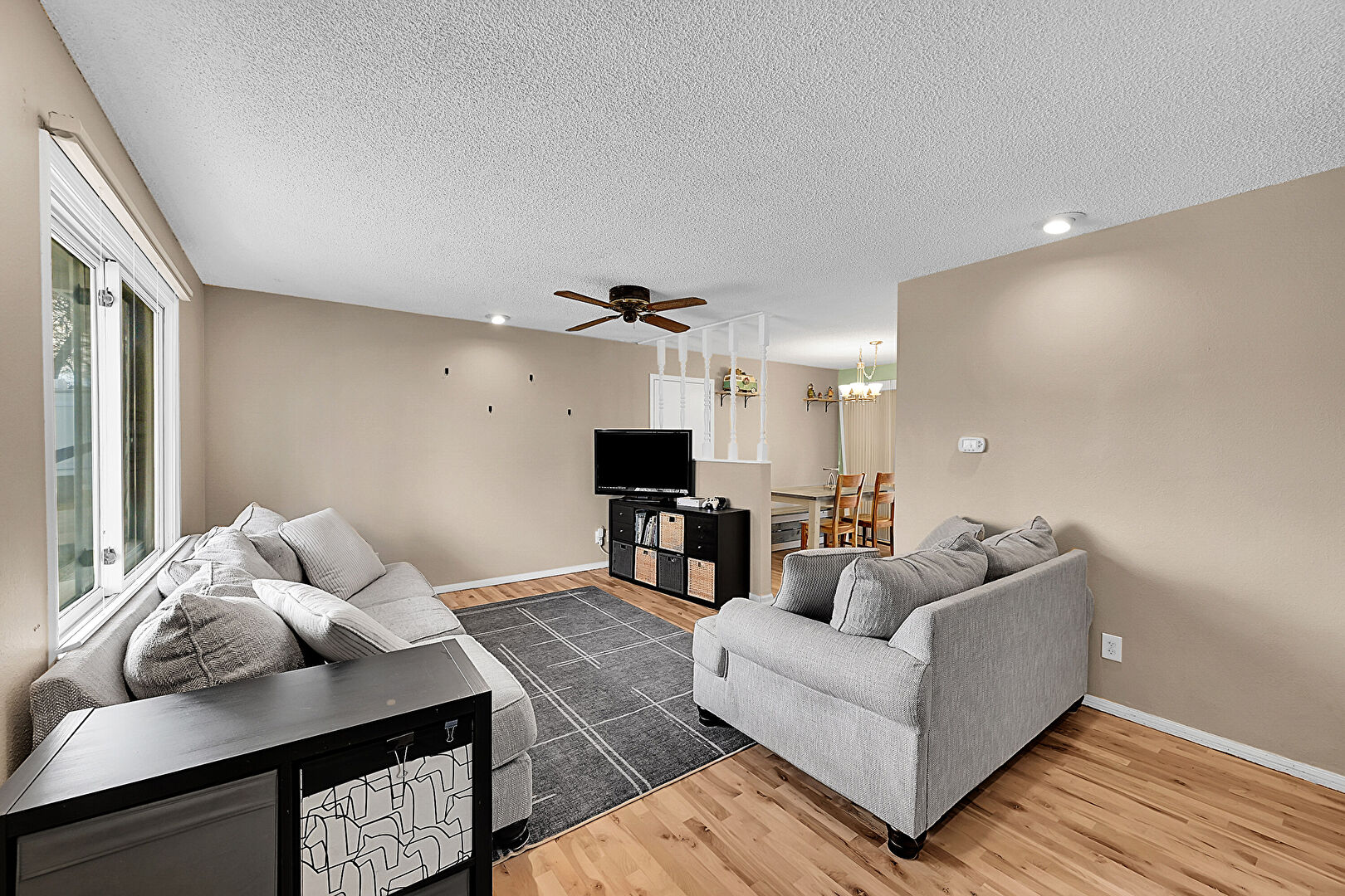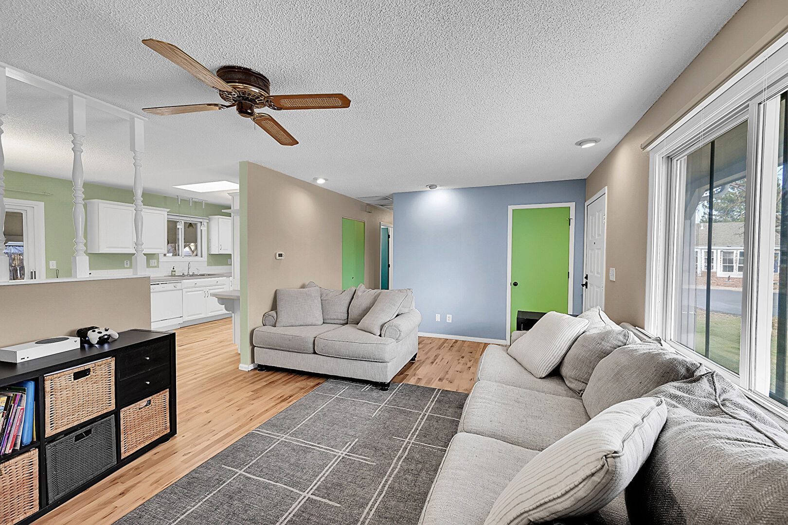 Baseboards Wall, Ceiling Fan, Drywall, Natural Light, Notable Chandelier, Recessed Lighting, Textured Ceiling, Wood Finish Floor, Baseboards Wall, Natural Light, Textured Ceiling