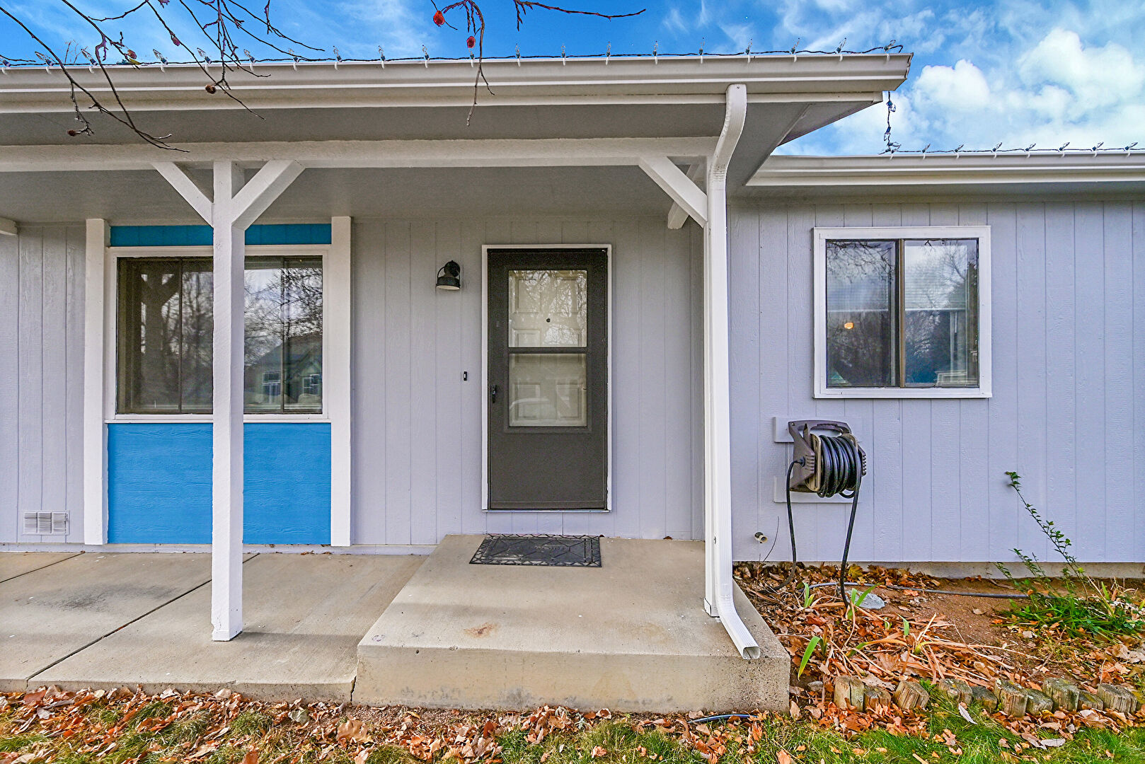 Concrete Foundation, Gutters, Porch, Vent, Vertical Siding, Downspout