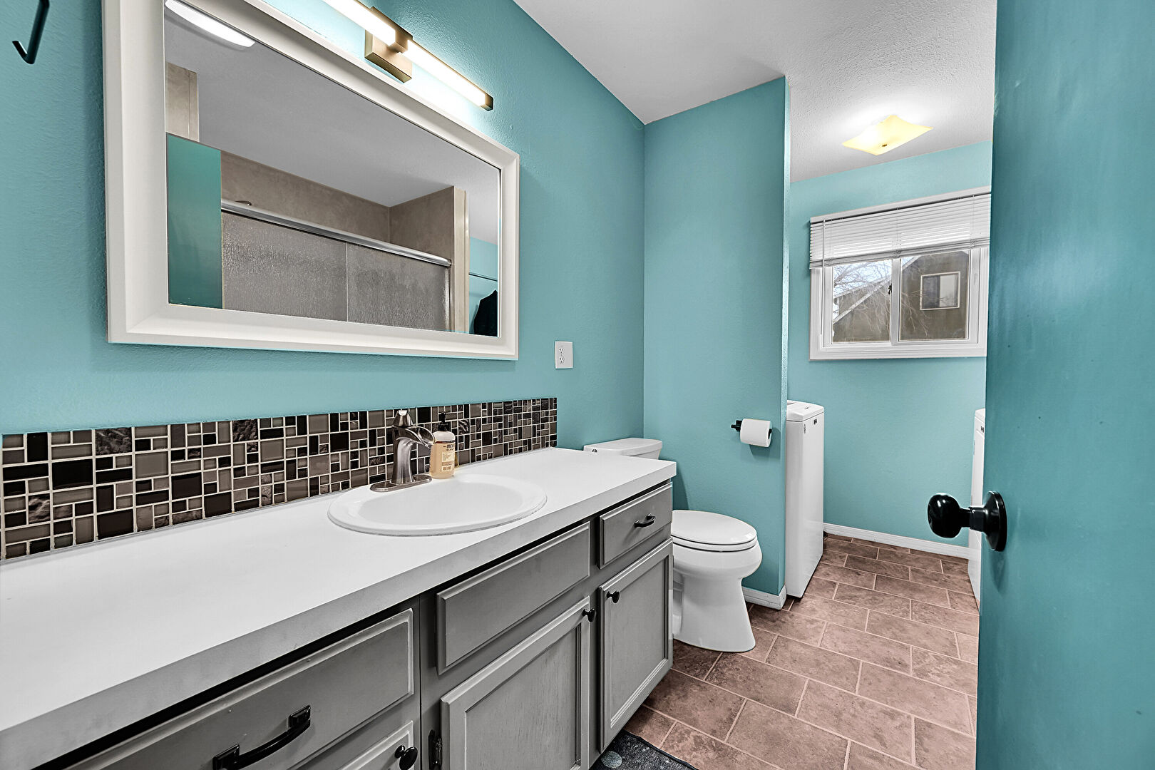 Drywall, Full Bathroom, Natural Light, Tile Floor, Vanity, Baseboards Wall