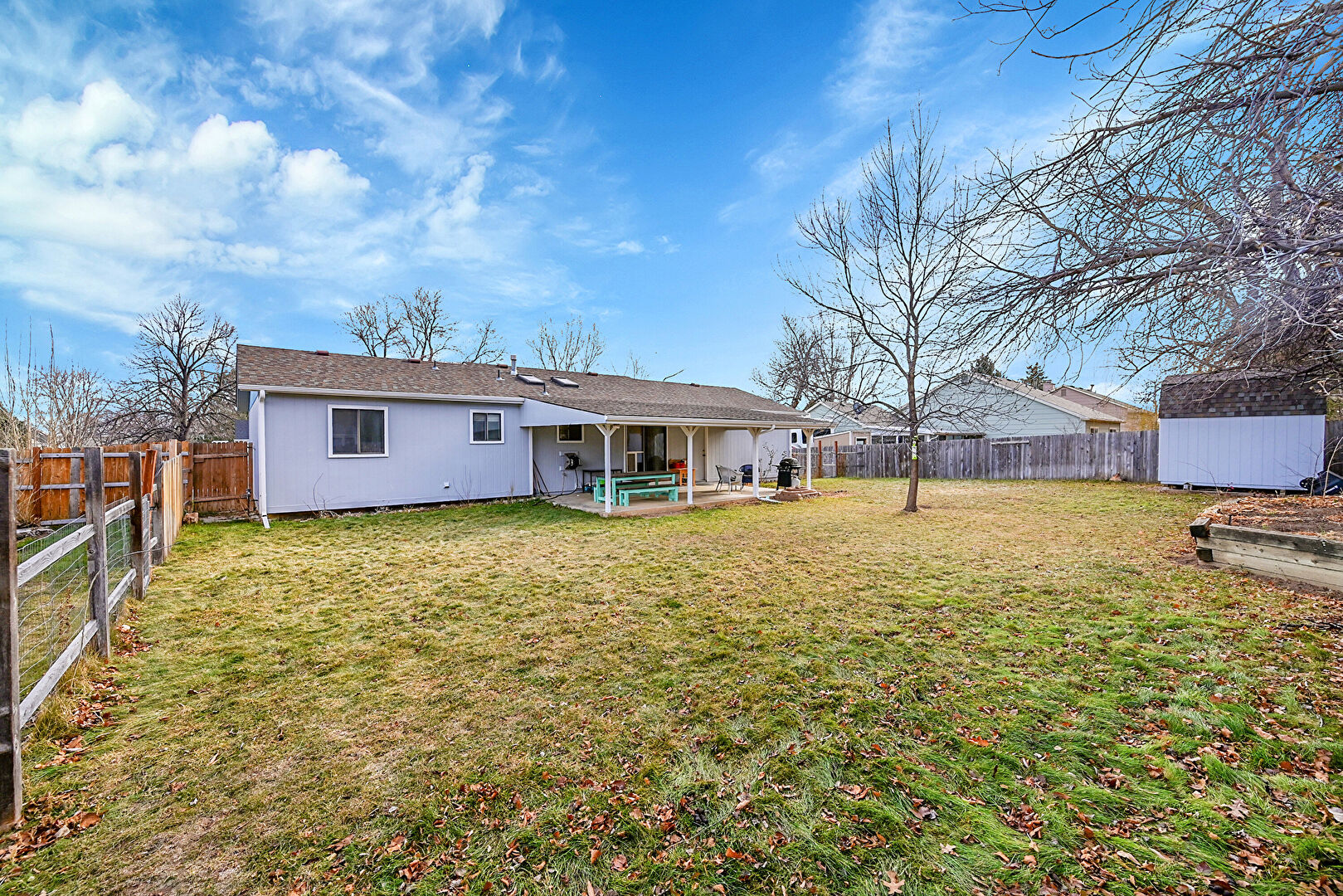 Concrete Foundation, Fence, Garden, Grill, Lawn, Outdoor Structure, Patio, Shed, Shingle Roof, Vertical Siding, Fence, Patio, Vertical Siding