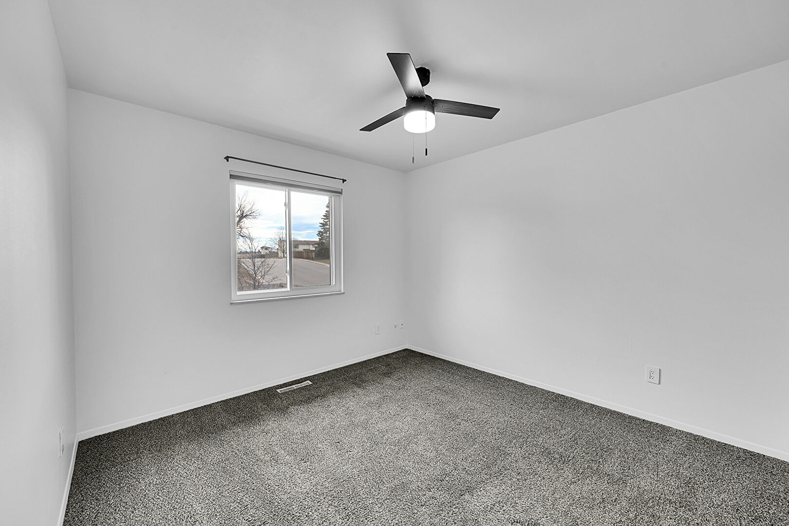 Carpet, Ceiling Fan, Closet, Drywall, Natural Light, Vent, Baseboards Wall
