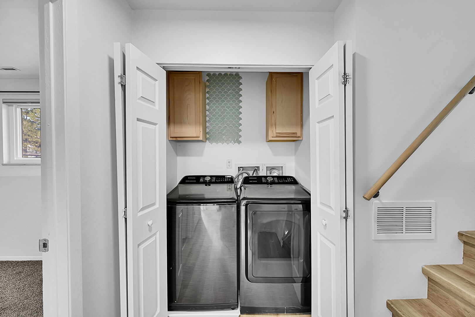 Baseboards Wall, Carpet, Drywall, Natural Light, Vent, Washer Hookup, Laundry