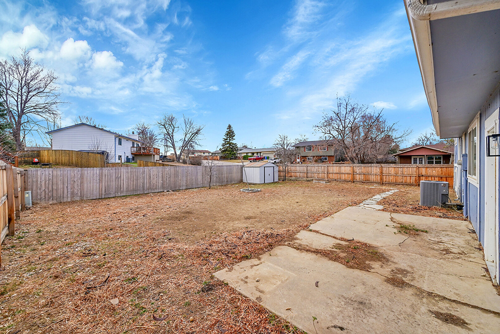 Central Ac, Downspout, Electric Meter, Fence, Garden, Gutters, Outdoor Structure, Patio, Residential View, Shed, Shingle Roof, Vertical Siding, Central Ac, Fence, Patio, Shed