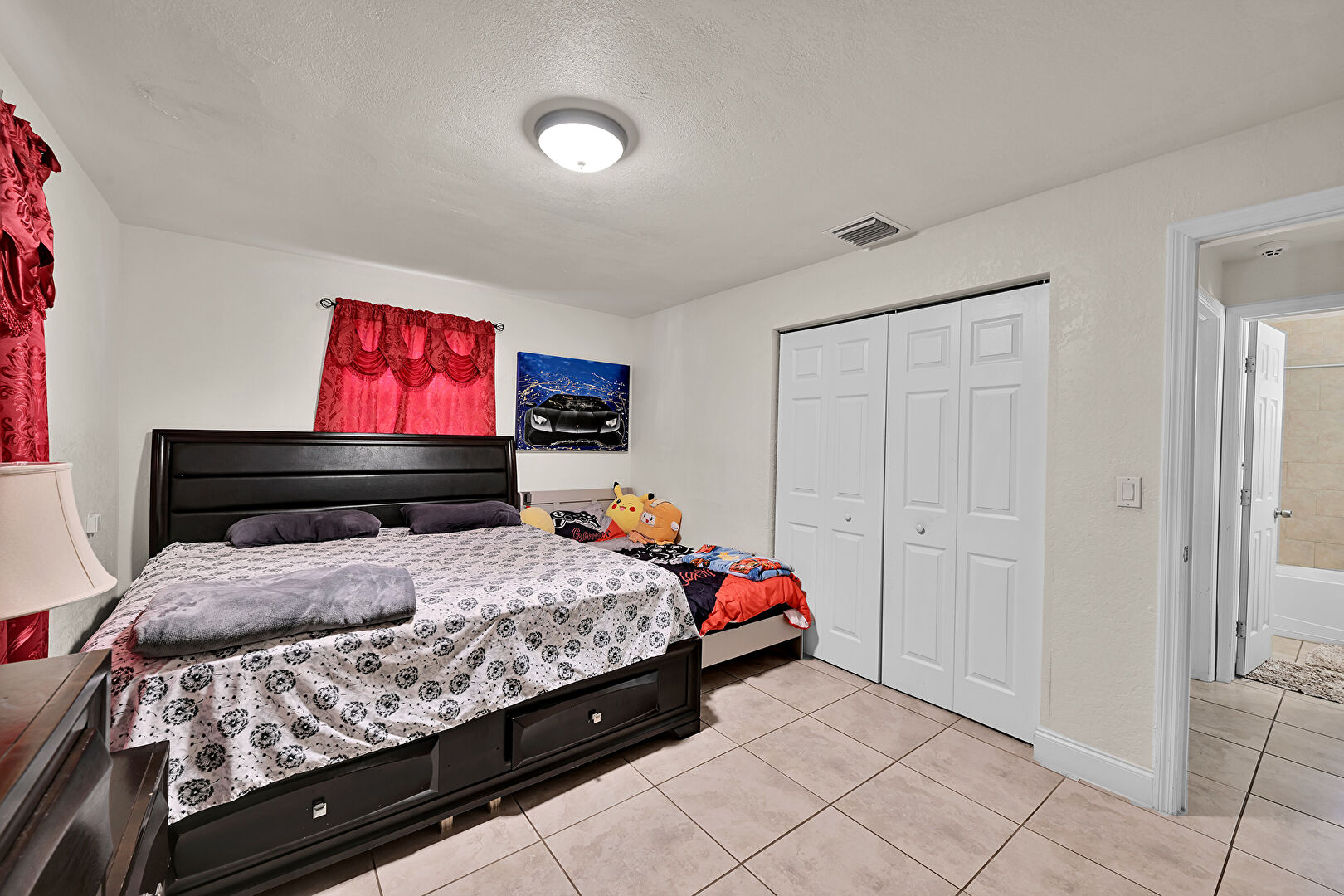 Baseboards Wall, Carpet, Drywall, Natural Light, Textured Ceiling, Tile Floor, Vent, Baseboards Wall, Drywall, Vent