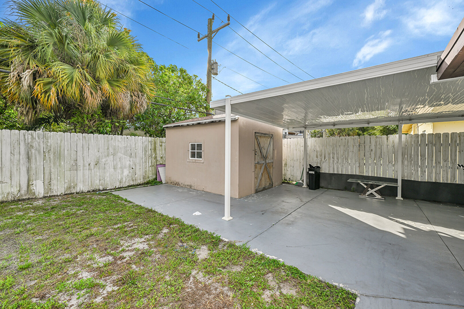 Fence, Outdoor Structure, Patio, Shed, Lawn