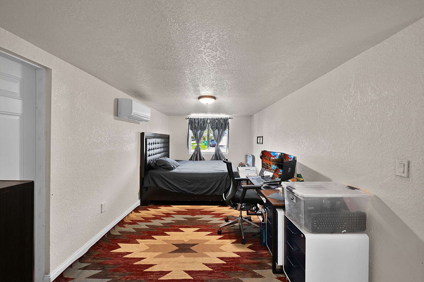 Baseboards Wall, Closet, Drywall, Natural Light, Office Area, Textured Ceiling, Textured Wall, Tile Floor, Vent, Wall Mounted Ac, Wood Finish Floor, Closet, Office Area, Textured Ceiling, Textured Wall, Vent