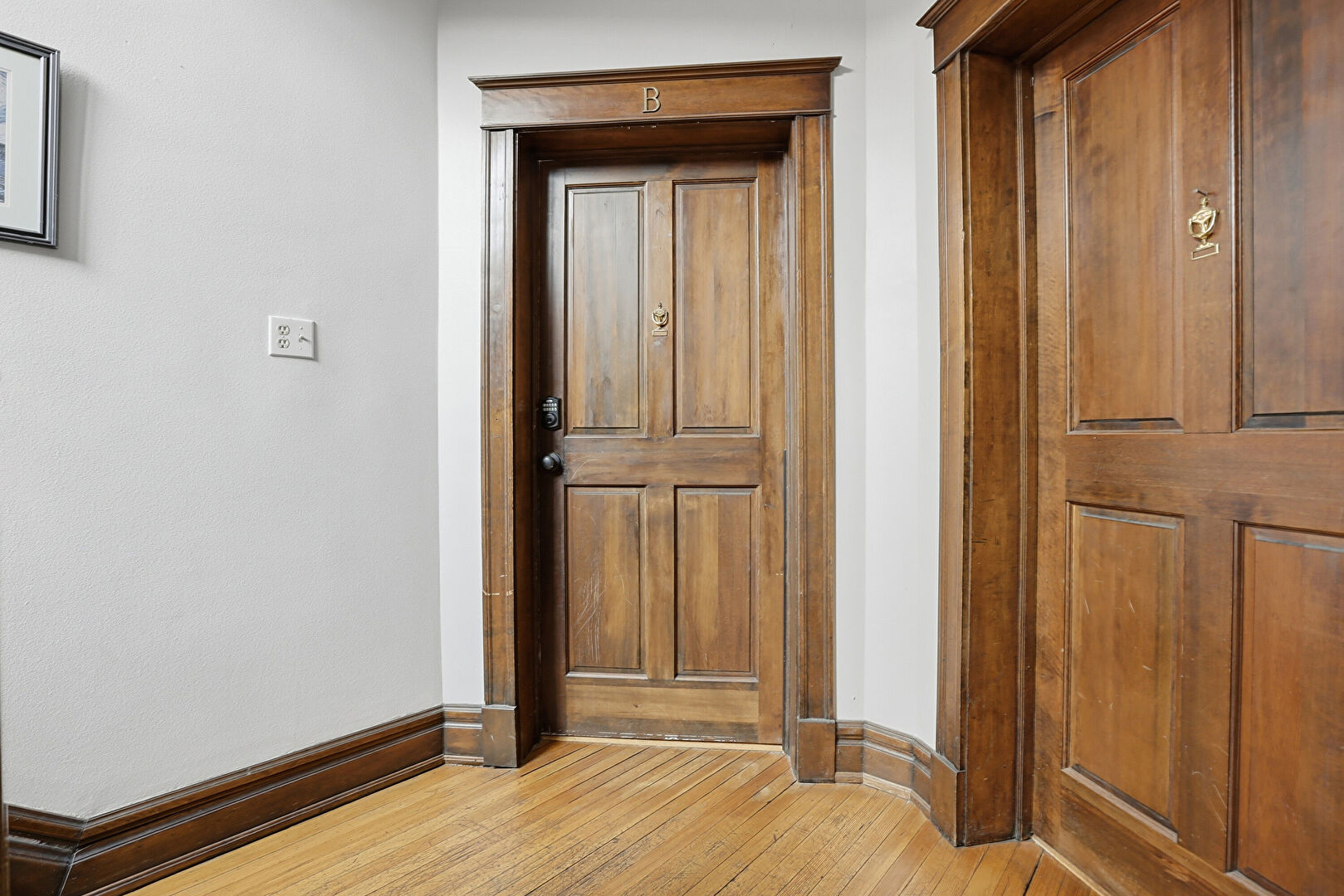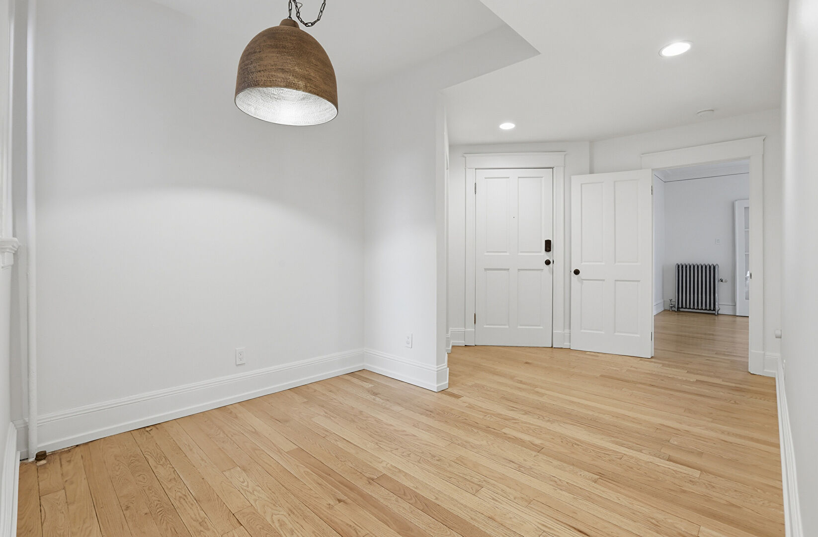 Barn Door, Baseboards Wall, Drywall, Natural Light, Recessed Lighting, Wood Finish Floor, Baseboards Wall, Radiator