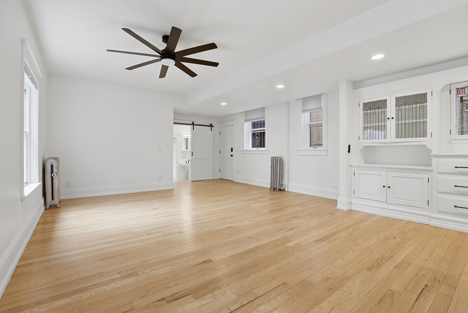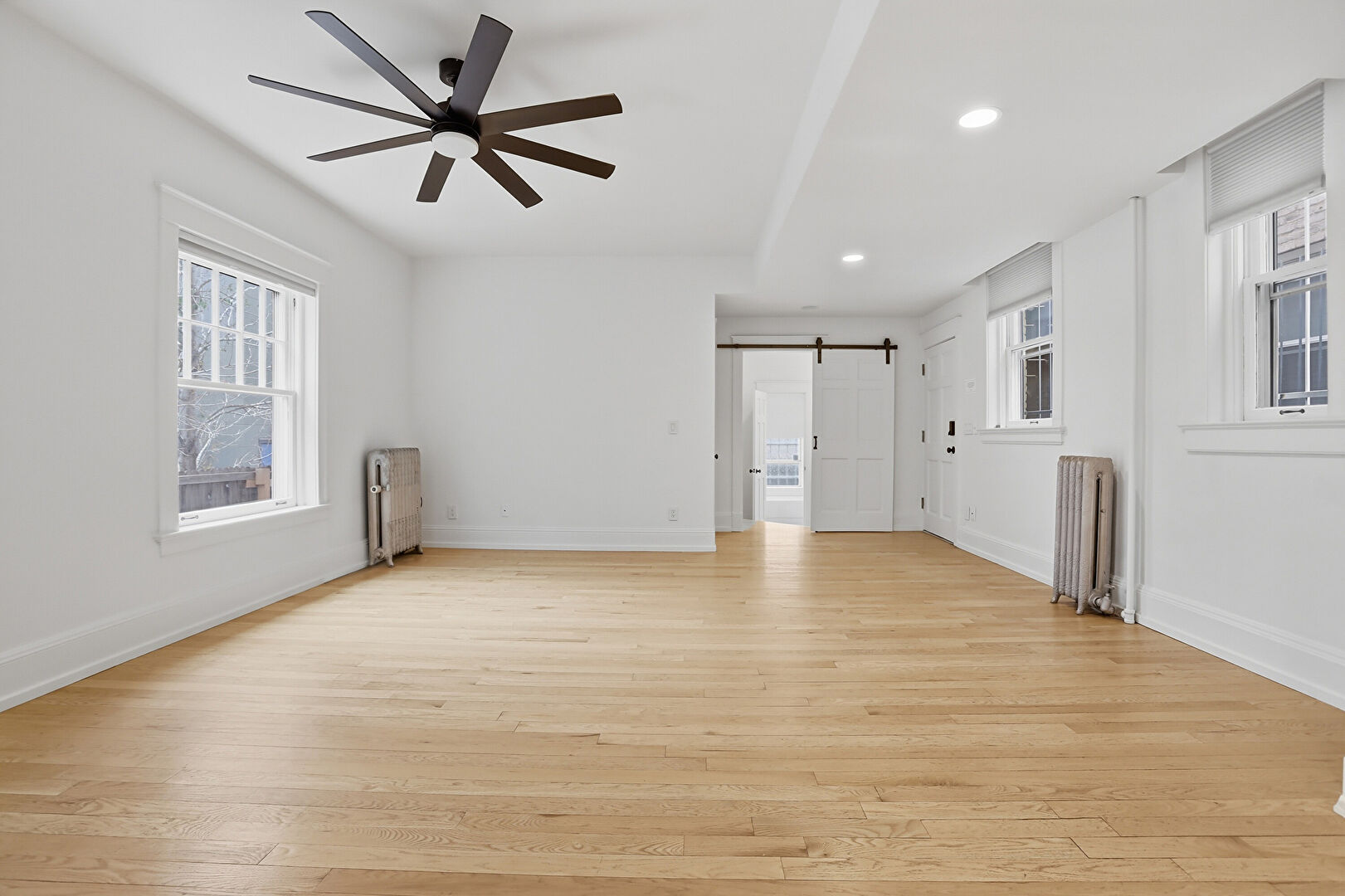Baseboards Wall, Ceiling Fan, Drywall, Natural Light, Radiator, Wood Finish Floor, Natural Light, Wood Finish Floor
