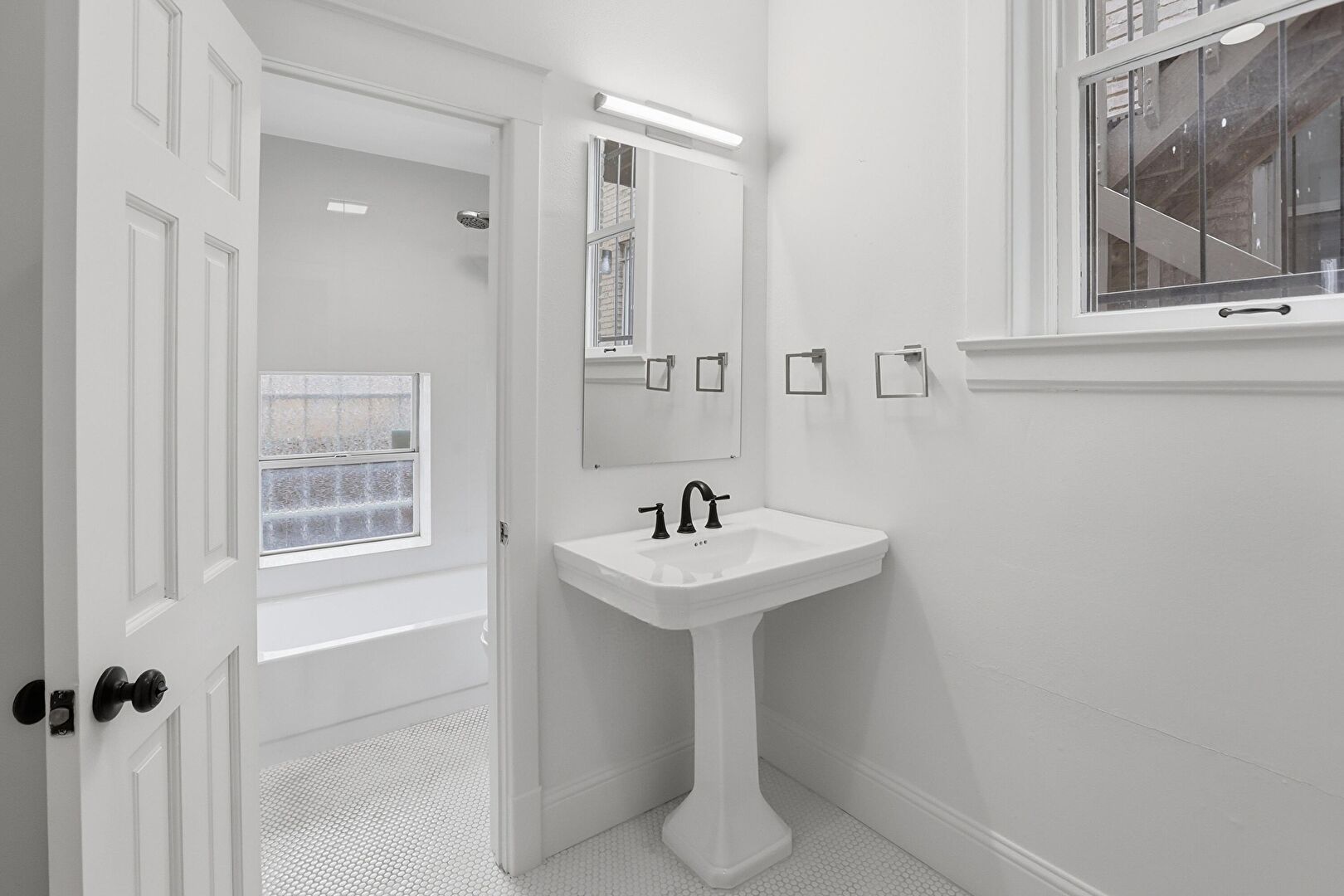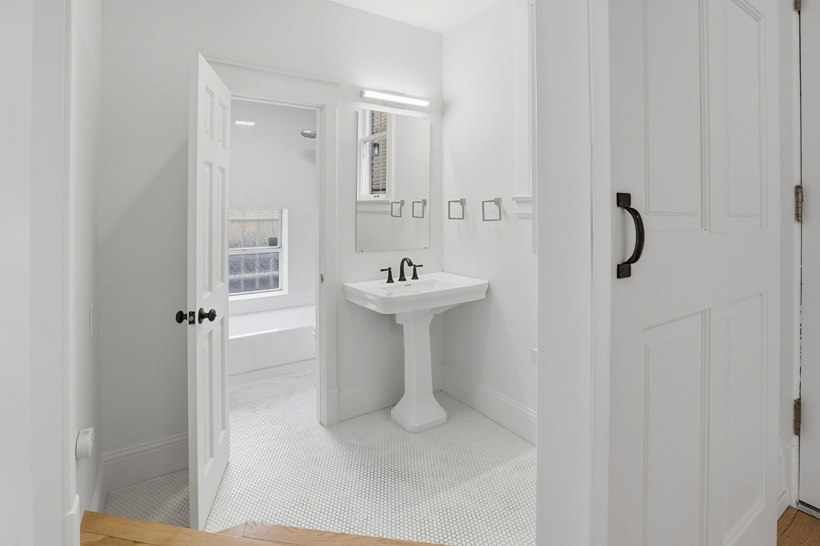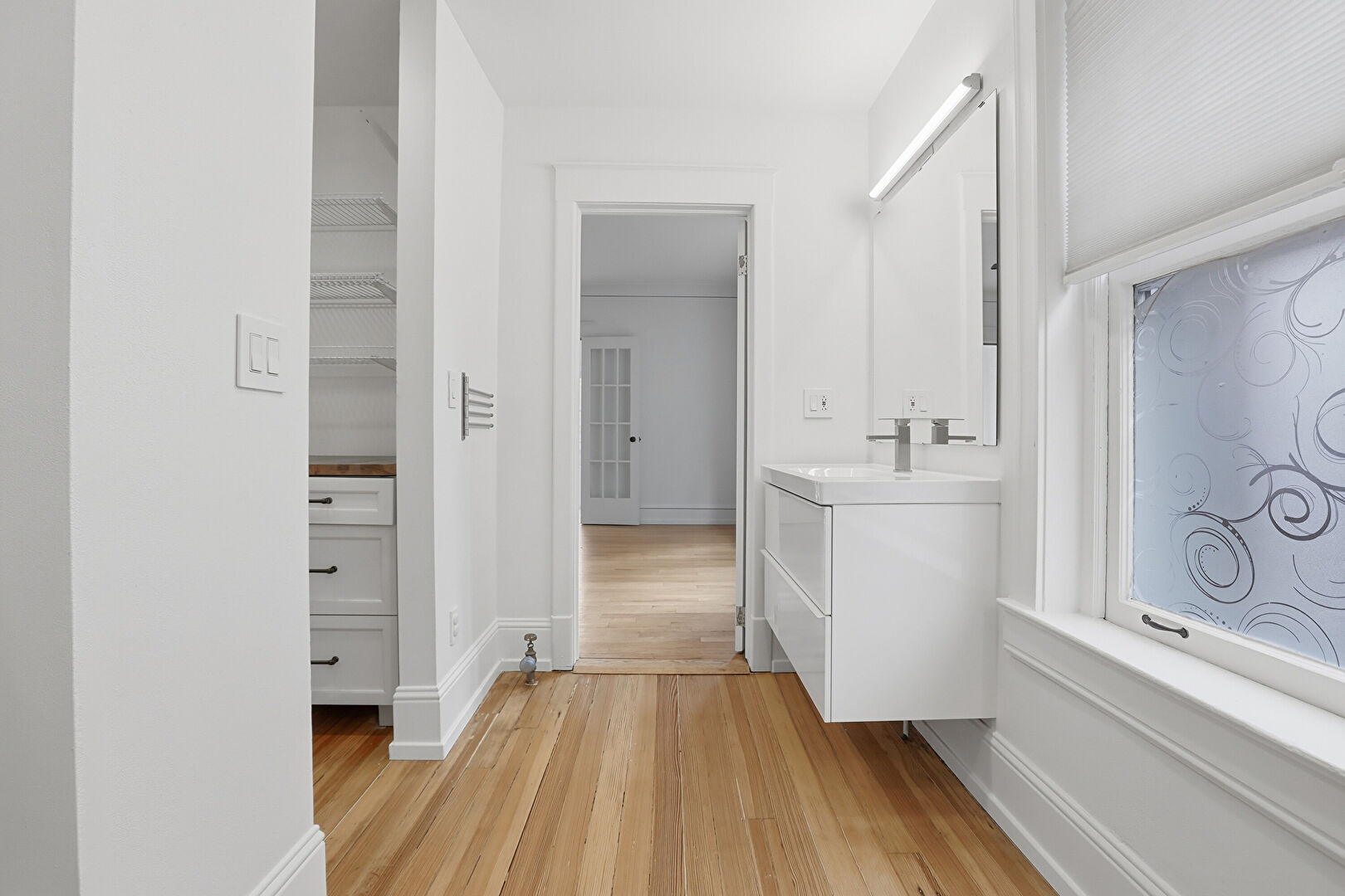 Baseboards Wall, Combined Bath Shower, Drywall, Full Bathroom, Natural Light, Recessed Lighting, Two Single Vanities, Vanity, Wood Finish Floor, Combined Bath Shower, Drywall, Recessed Lighting, Tile Floor, Wood Finish Floor