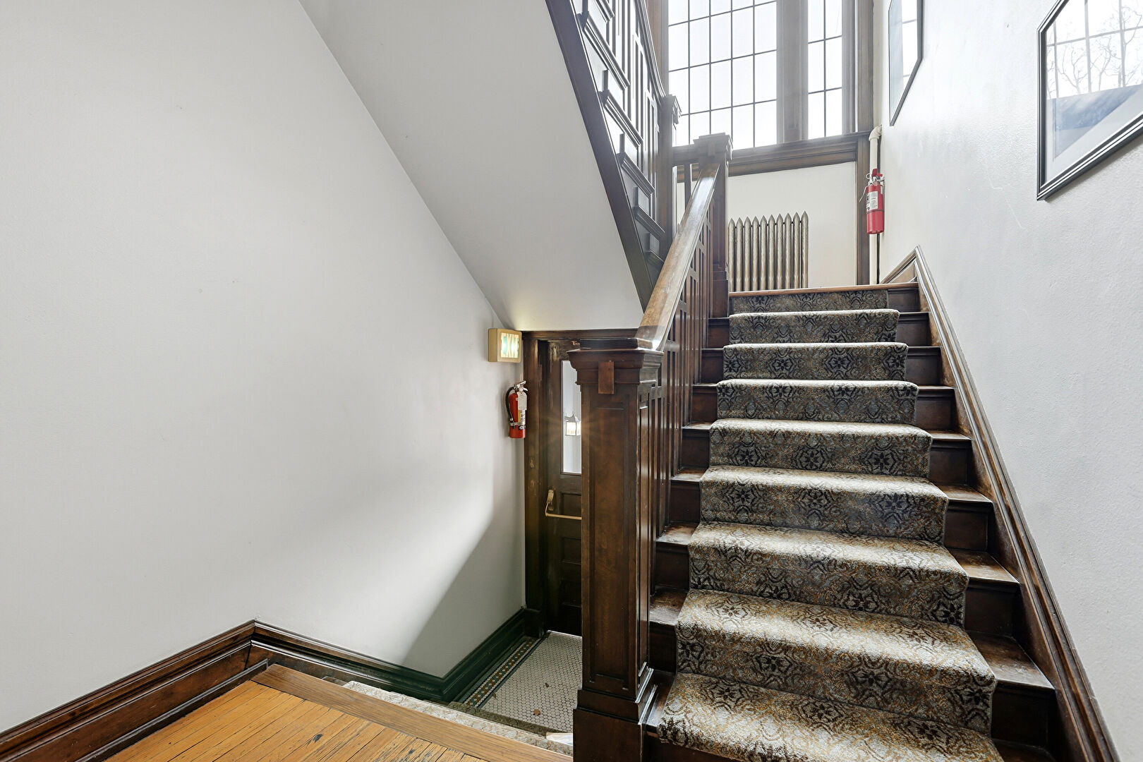 Baseboards Wall, Fire Extinguisher, High Ceiling, Natural Light, Stairs, Drywall