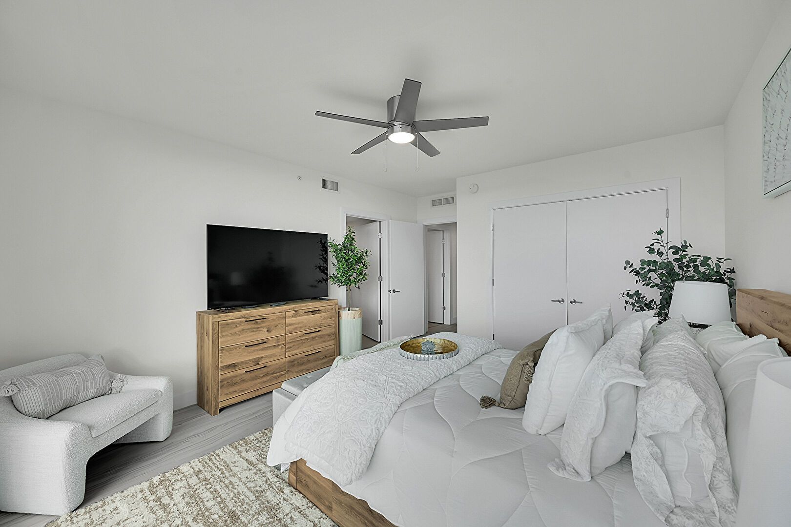 Access To Exterior, Ceiling Fan, Closet, Drywall, Natural Light, Vent, Wood Finish Floor, Ceiling Fan, Floor Ceiling Windows