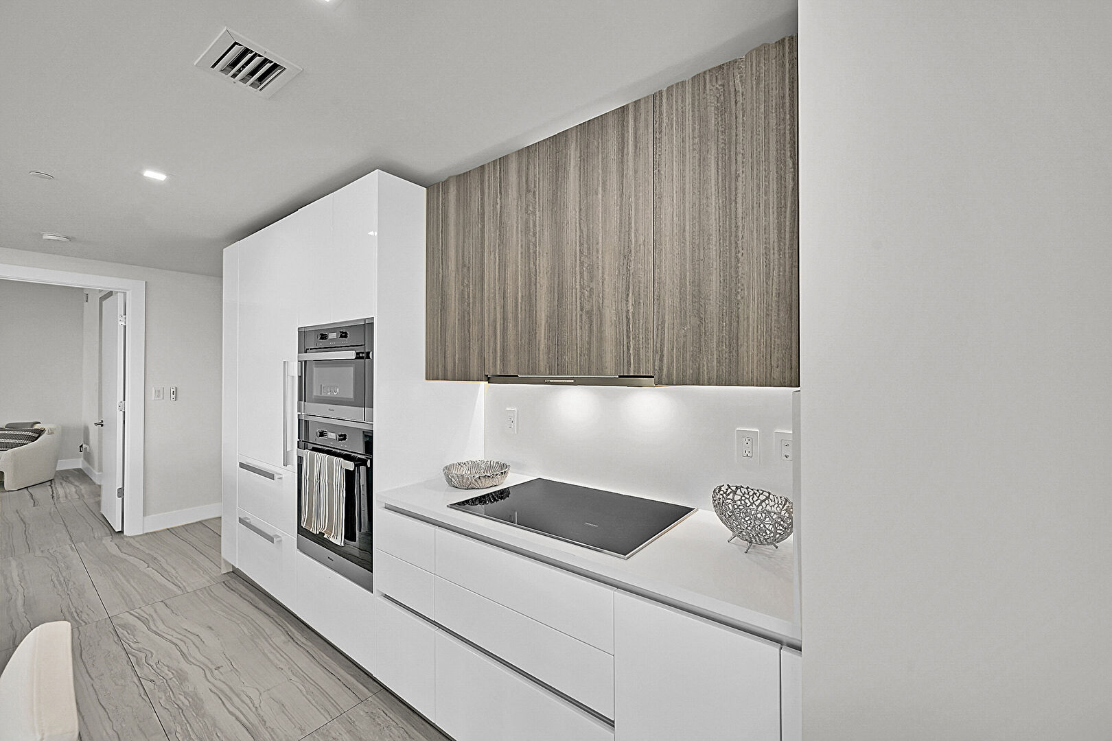 Baseboards Wall, Basement, Double Oven, Drywall, Flat Panel Cabinets, Floor Ceiling Windows, Kitchen Bar, Kitchen Island, Medium Brown Cabinets, Natural Light, One Wall Kitchen, Opens To Living Area, Recessed Lighting, Smoke Carbon Monoxide Detector, Stone Countertops, Vent, Wine Cooler, Wood Finish Floor, Baseboards Wall, Drywall, Flat Panel Cabinets, Recessed Lighting