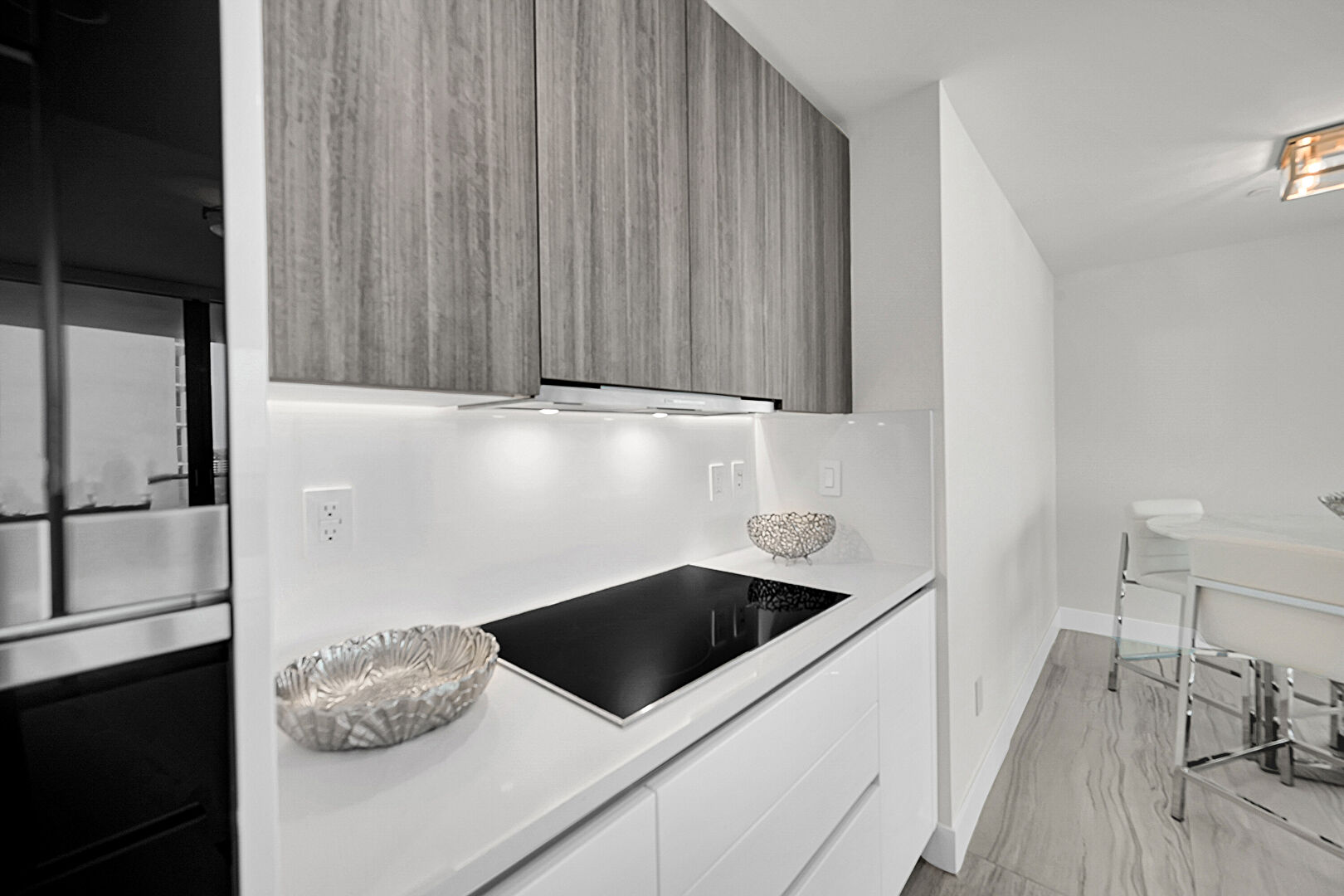 Flat Panel Cabinets, Pendant Lighting, Stone Countertops, Indoor Bar