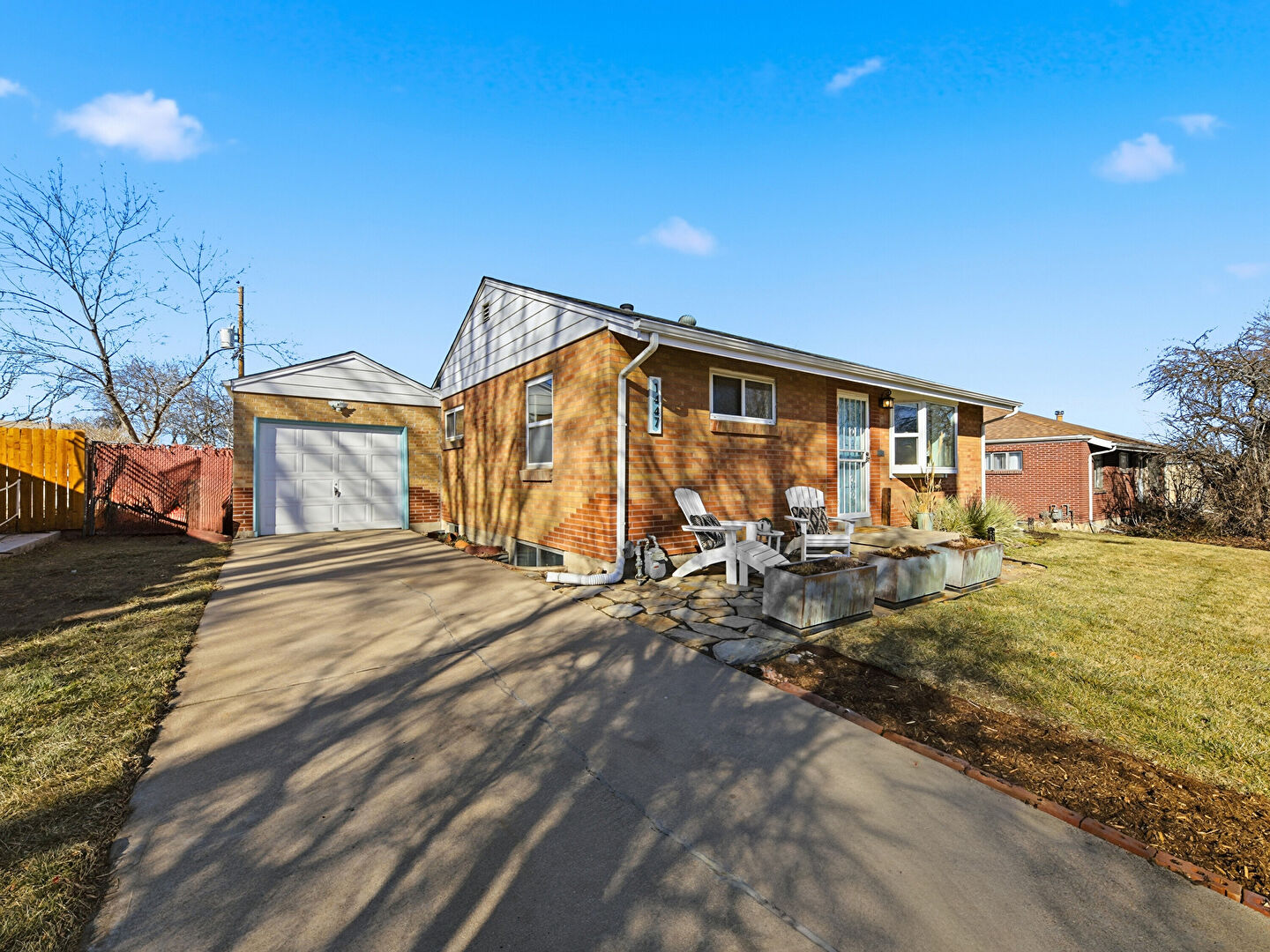 Brick Siding, Concrete Foundation, Gas Meter, Gutters, Lawn, Patio, Downspout