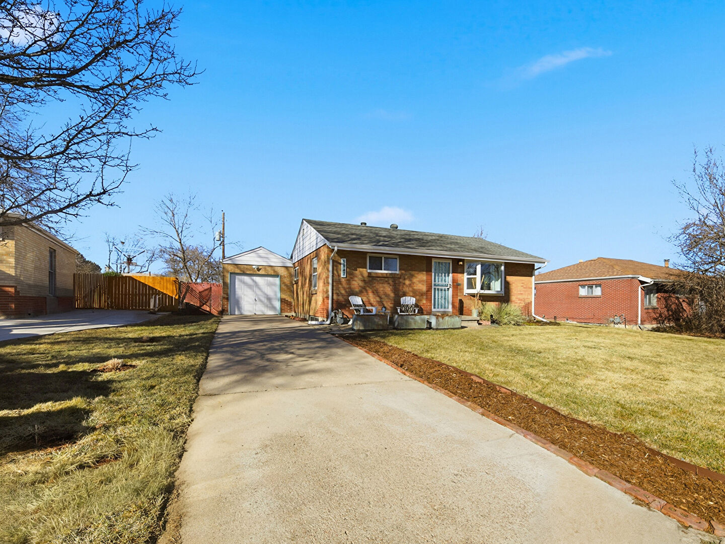 Brick Siding, Concrete Foundation, Downspout, Driveway, Fence, Garage, Gas Meter, Gutters, Lawn, Outdoor Structure, Patio, Shake Shingle Siding, Stoop, Brick Siding, Entry Steps, Lawn, Stoop