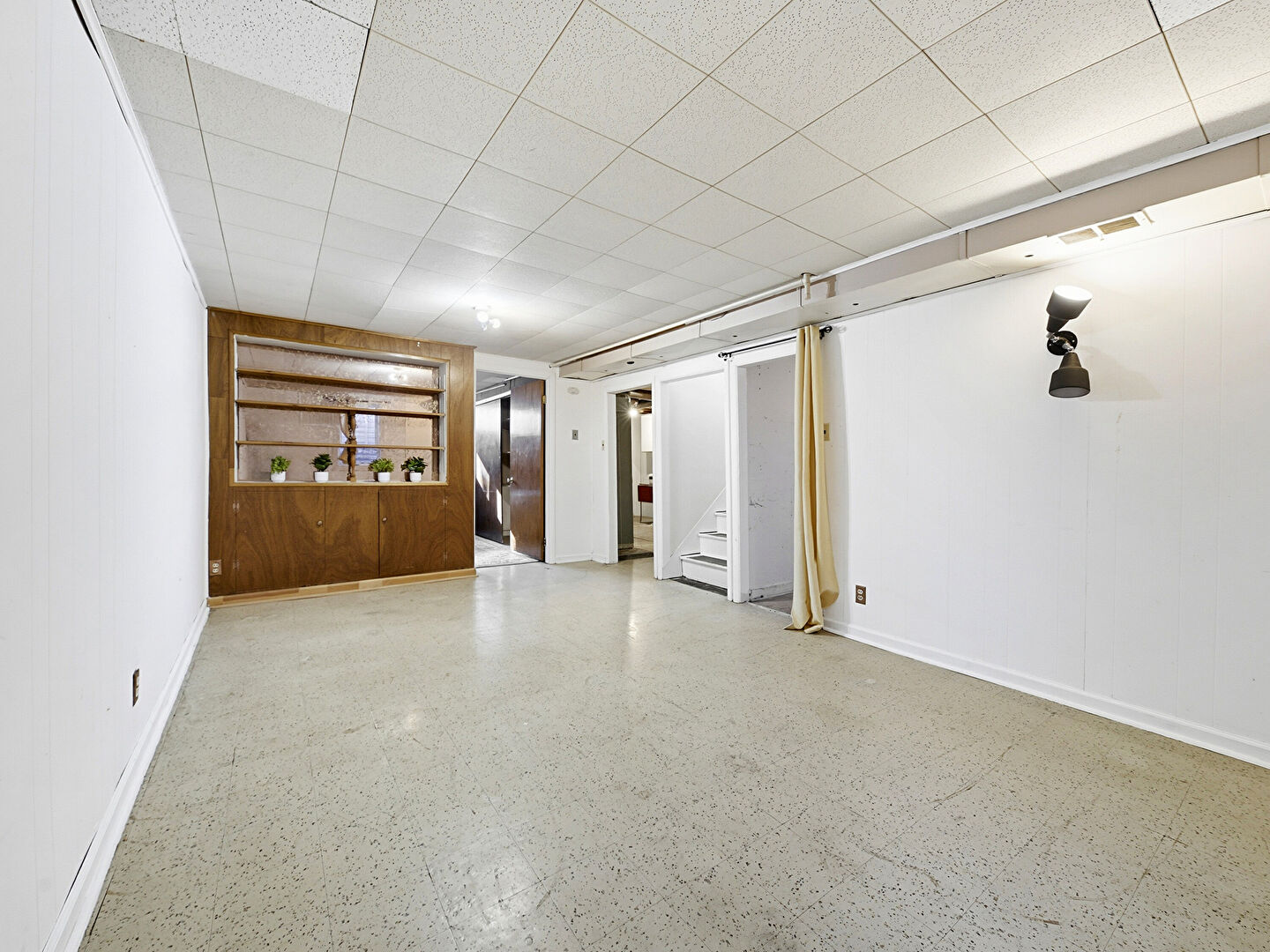 Baseboards Wall, Basement, Built In Shelves, Drywall, Furnace, Laundry, Natural Light, Stairs, Vent, Vinyl Floor, Washer Hookup, Water Heater, Wood Wall, Basement, Drop Ceiling, Natural Light