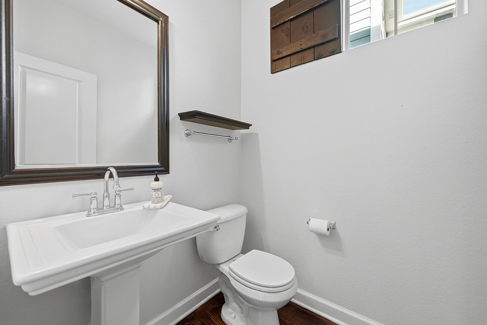 Baseboards Wall, Combined Bath Shower, Drywall, Full Bathroom, Half Bathroom, Natural Light, Tile Floor, Two Single Vanities, Vanity, Vent, Wood Finish Floor, Natural Light, Recessed Lighting, Vanity
