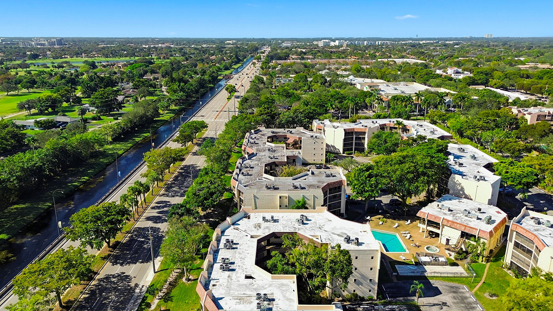 Apartment Complex View, Stucco Siding, Tile Roof, Apartment Complex View, Parking Lot