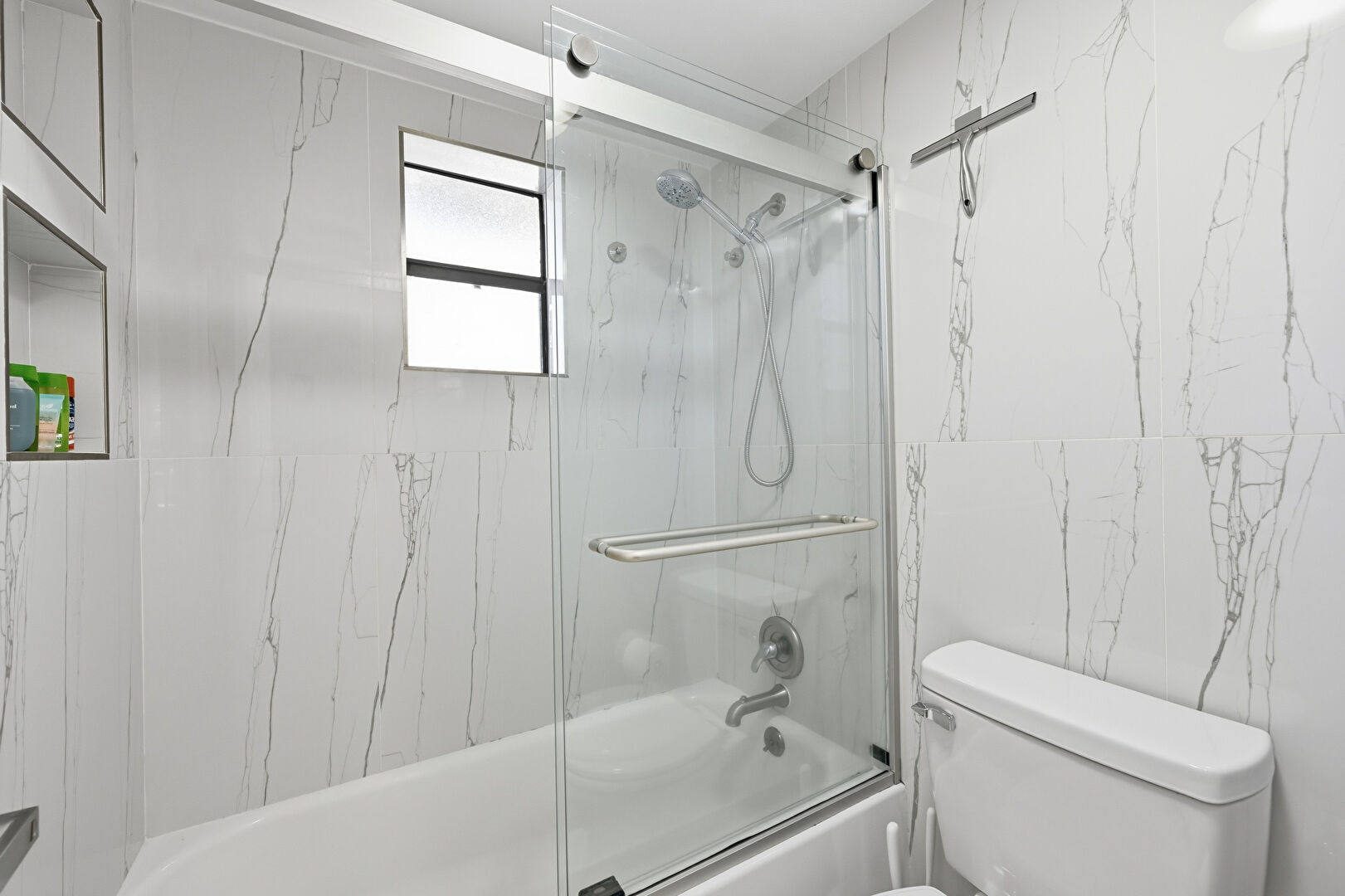 Full Bathroom, Marble Wall, Tile Wall, Vanity, Natural Light