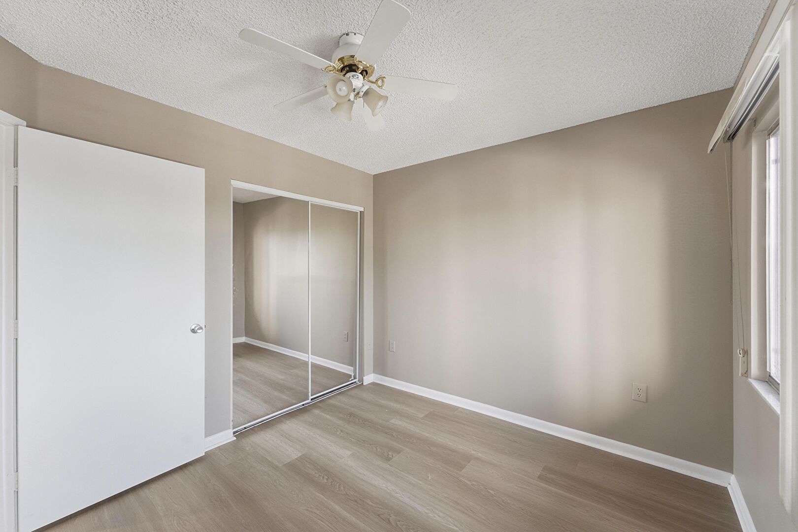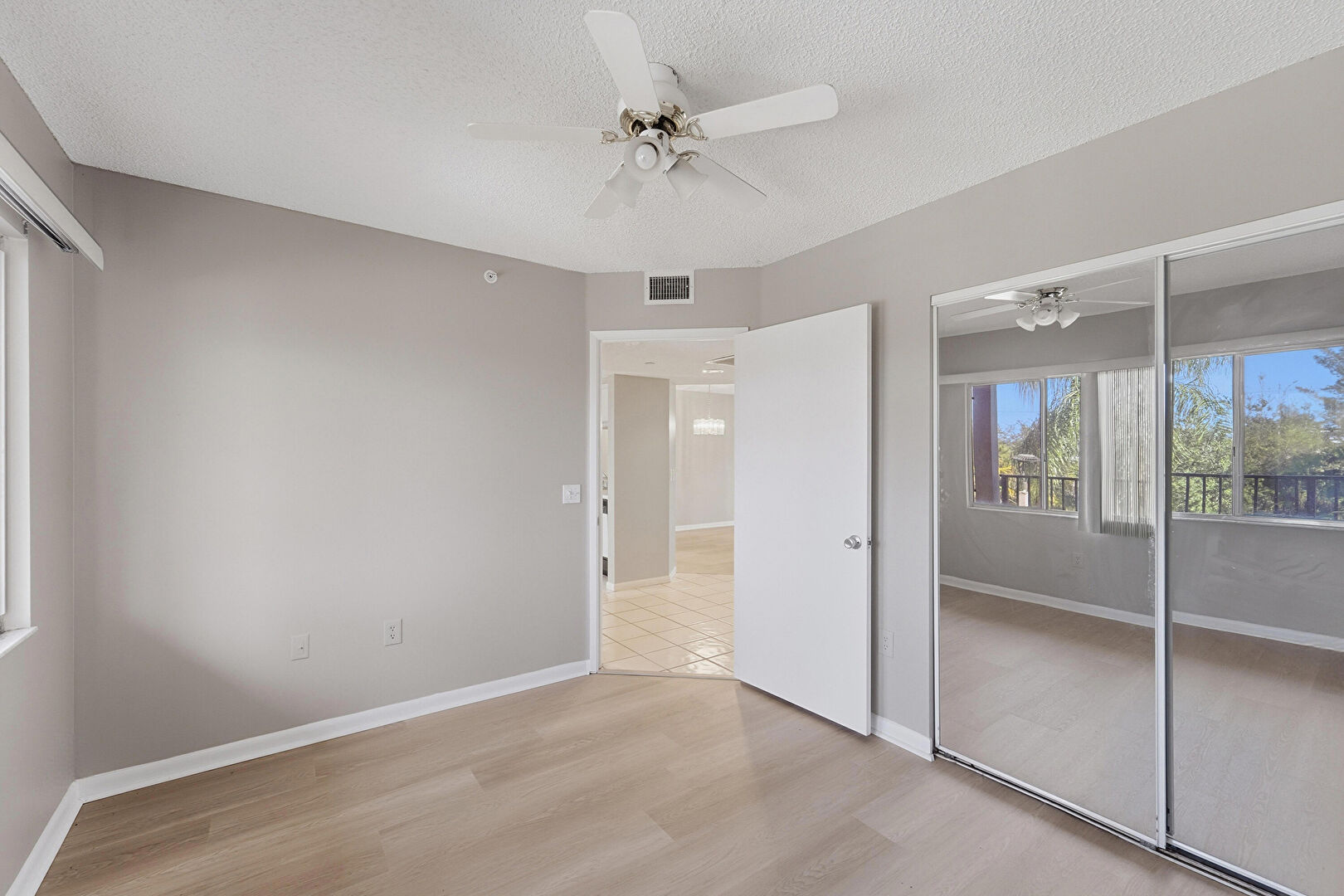 Baseboards Wall, Ceiling Fan, Closet, Drywall, Natural Light, Textured Ceiling, Vent, Wood Finish Floor, Ceiling Fan, Natural Light, Wood Finish Floor